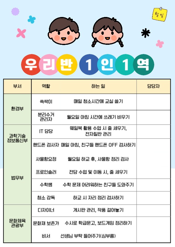 6์์ด ๋์ด์ 1์ธ 1์ญ ์๋ฃ๋ฅผ ์๋ก ๋ง๋ค์ด ์๋ก์ด 1์ธ 1์ญ์ ์ ํ์ต๋๋ค. ํ์ฉํ์ ๋ค๋ฉด ํ๊ธ์์ ์ ์จ์ฃผ์ธ์ ^^