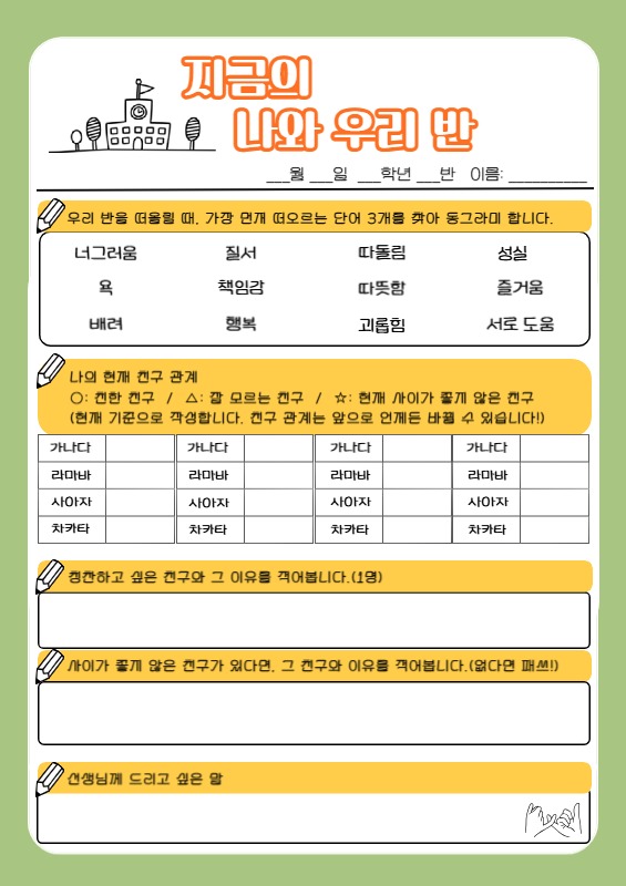 학부모 상담 주간을 준비하며 학생들의 교우 관계를 조사할 때 사용해요!