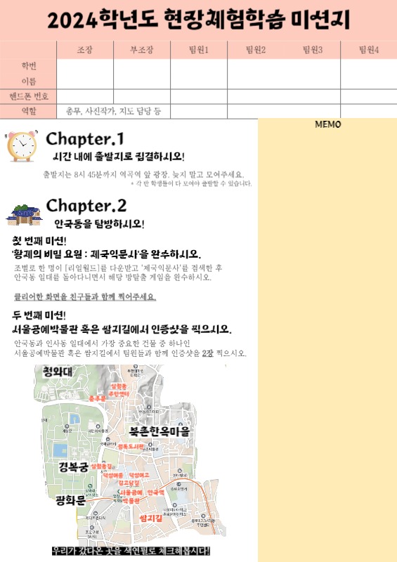 현장체험학습을 많이 다녀오셨을텐데요! 저는 안국동과 청와대를 다녀왔습니다.