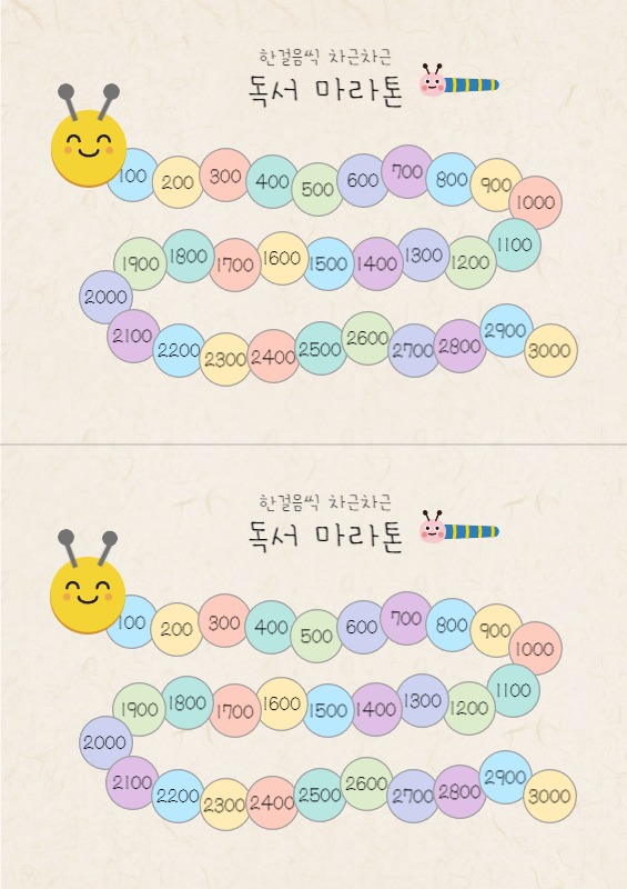 저학년에서 주로 활용하기 좋은 책벌레 독서마라톤 스티커판 공유드려요!