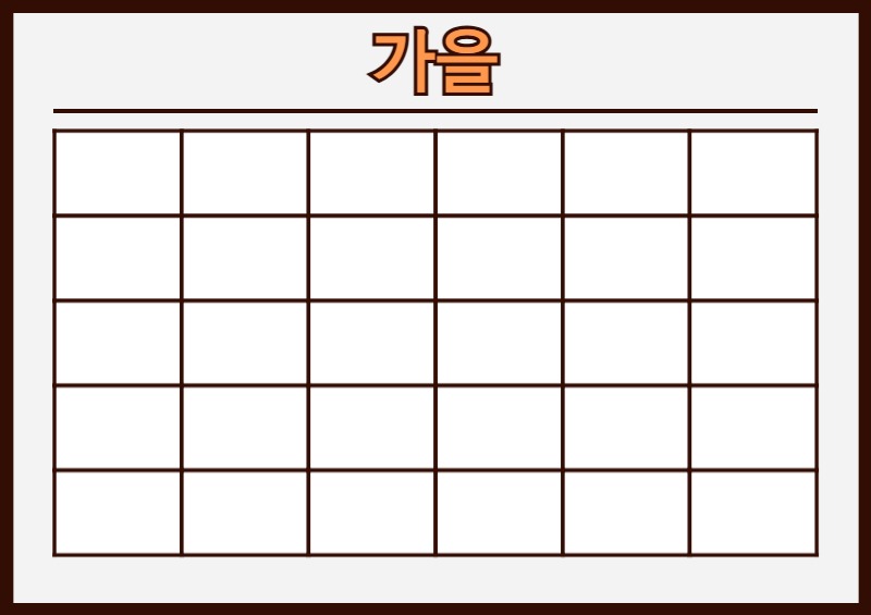가을 단어 수집판(빙고판 활용 가능)(30칸)