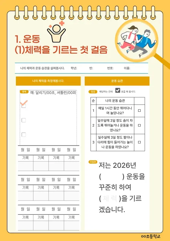 운동 습관 기록지(초등 체육 1. 운동)