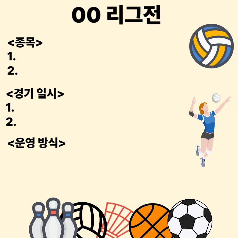 다양한 종목에서 사용 가능한 리그전 공지 템플릿입니다.