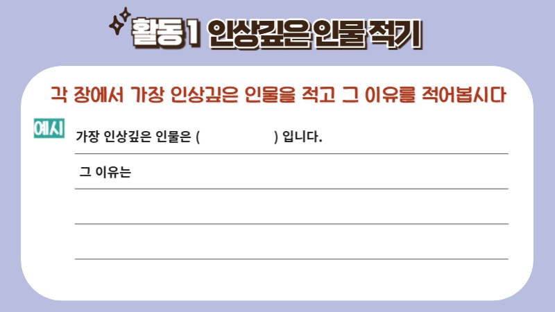 책 속 인물에 대해 정리하고 탐색하는 활동은