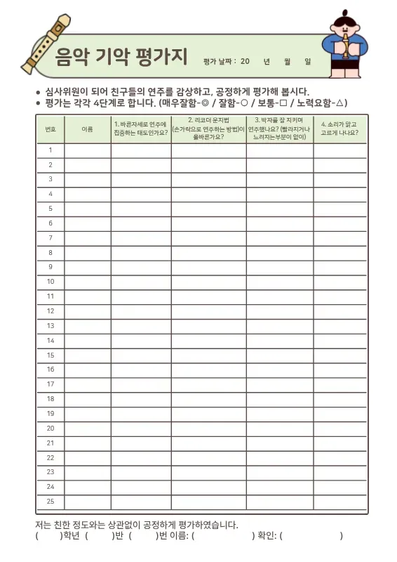 🎶✨[자료공유] 기악/ 가창 음악 동료 평가지 2종 (평가요소 4개 포함🎁)