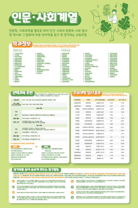 고등학교 교육과정 박람회 때 활용할 수 있는 계열별 대학 학과 정보 및 선택과목 추천 템플릿입니다.
