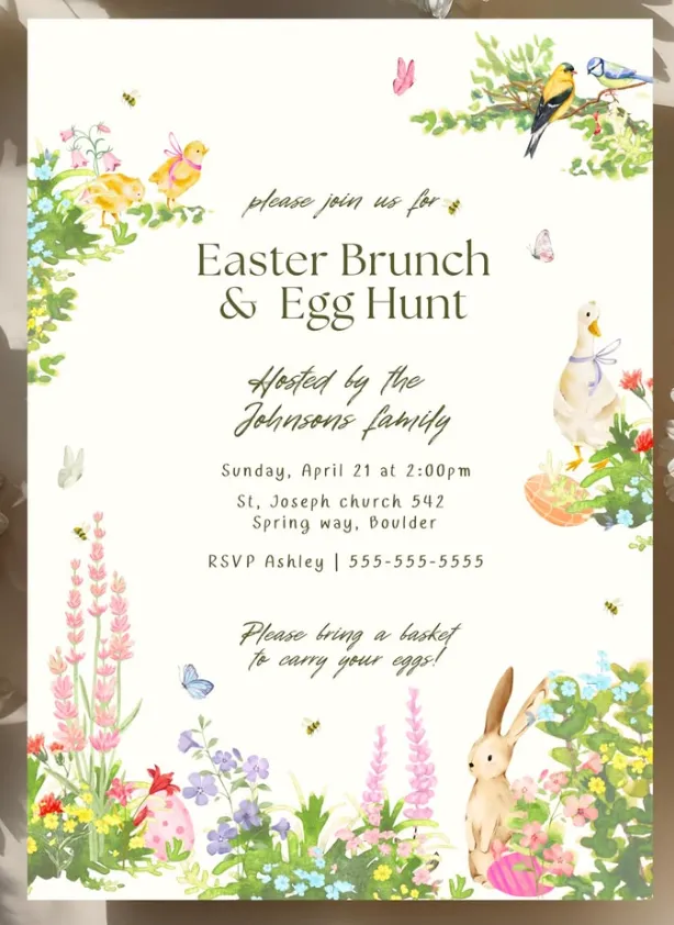 When designing this template, focus on creating a bright, cheerful, and festive atmosphere that reflects the playful nature of the event. Common visual elements include pastel color palettes, eggs, baskets, bunnies, flowers, and spring-themed illustrations. The design should feel welcoming and easy to read, with clear hierarchy for event details such as date, time, and location.