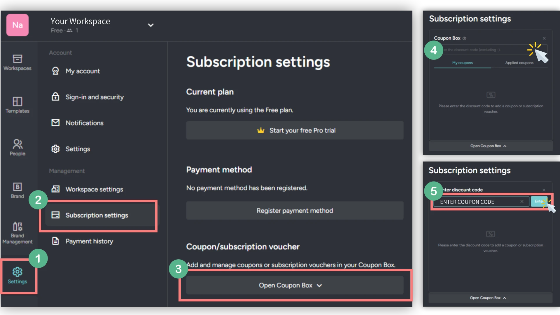 After the coupon is applied, refresh your browser and you will be able to see your plan changed to PRO.