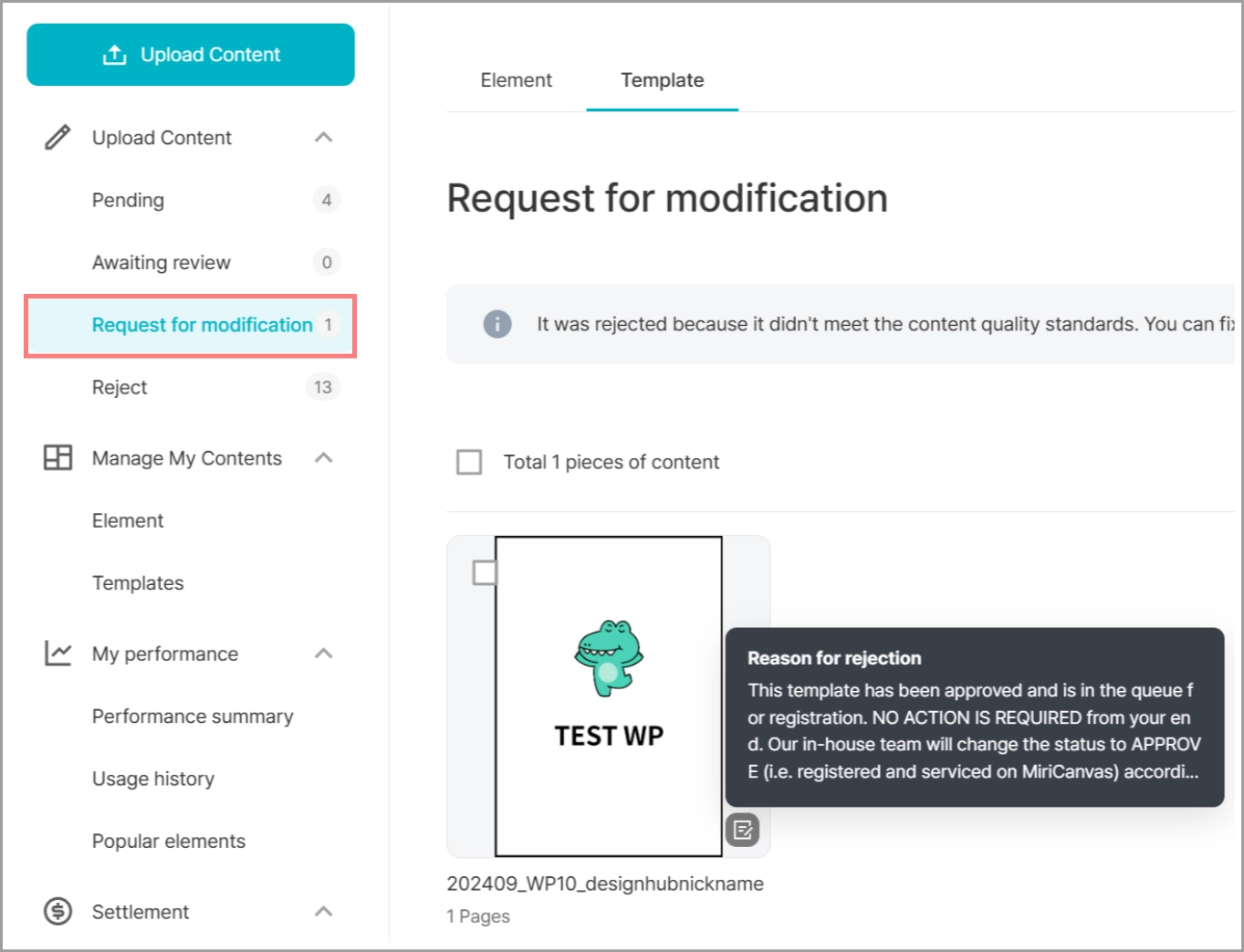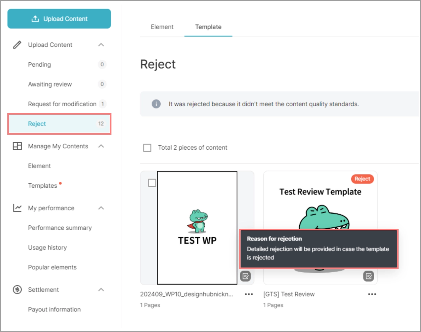 To resubmit a rejected template, you MUST MAKE A COPY of the original template file, make the edits, and submit the modified template file's URL via DesignHub as usual. You will receive an error if you try to submit the original template's URL again on DesignHub.