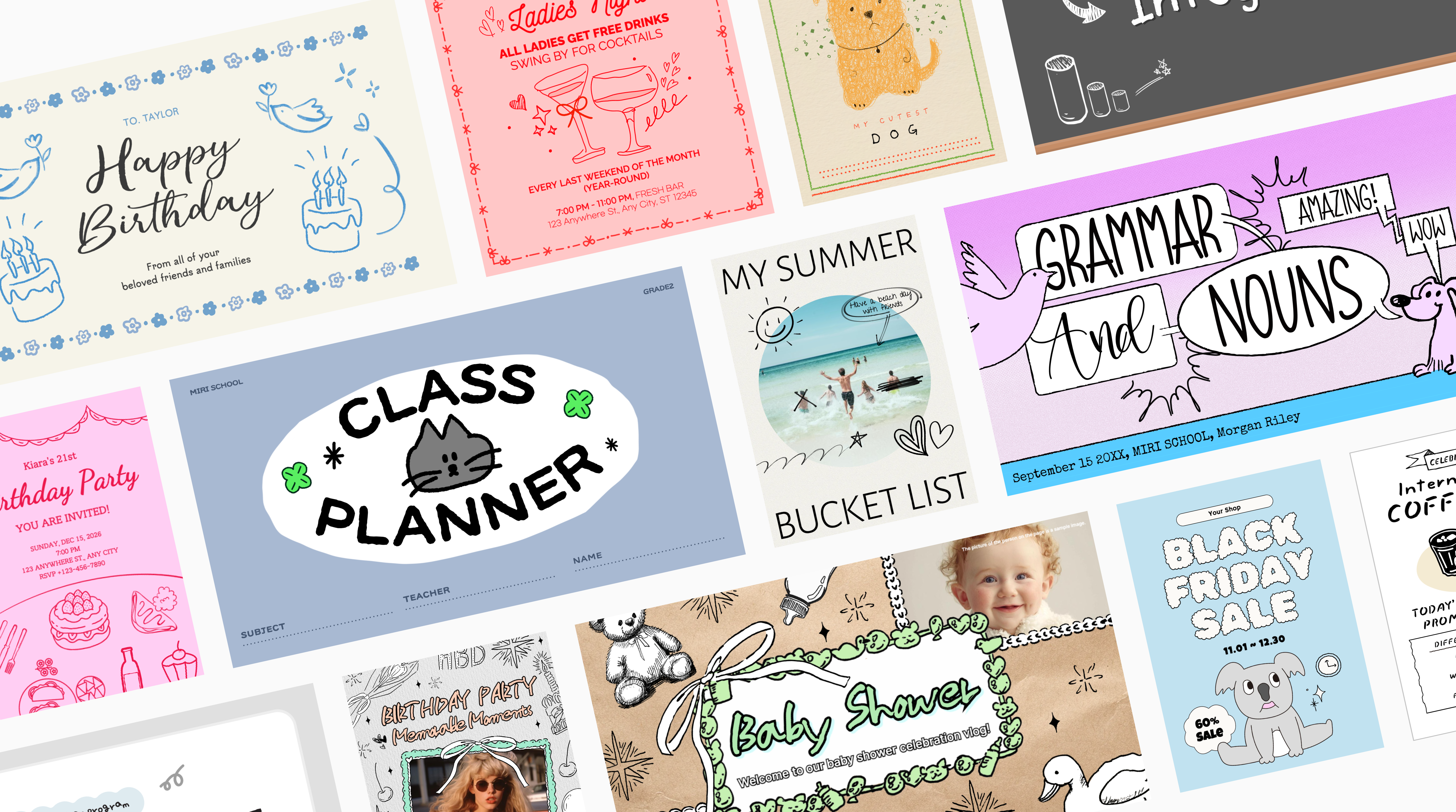 Hand-drawn style incorporates elements that appear to be created by hand rather than through precise digital tools. This style emphasizes natural, imperfect, and whimsical qualities, often featuring irregular lines, textures, and a sense of craftsmanship.
