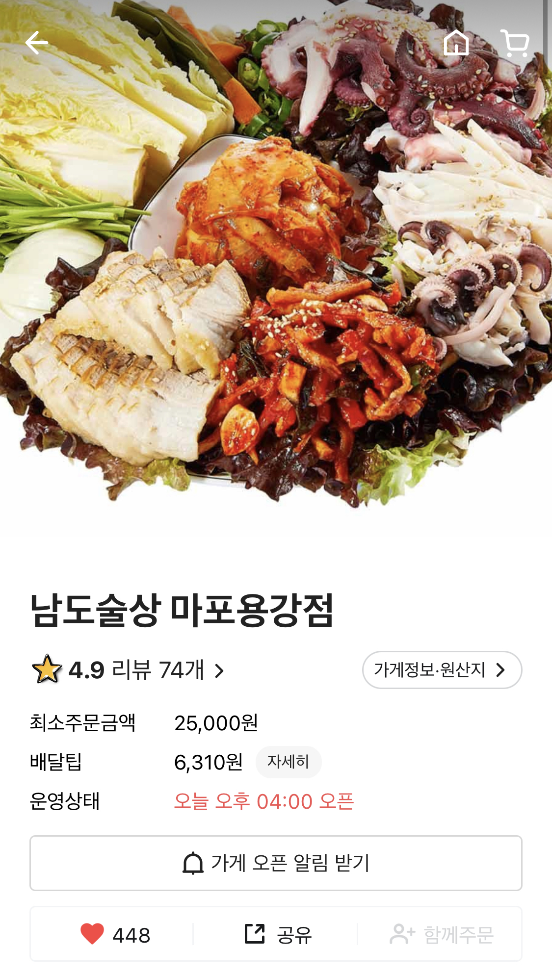 1️⃣ 특징 거리가 조금 있어서 배달료가 비싸지만,, 꼭 한 번 추천하고 싶은 곳 고기도 좋아하고 쫄깃한 문어, 갑오징어를 좋아한다면 최고의 한상 야채도 듬뿍 주셔서 푸짐하게 먹을 수 있음 2️⃣ 추천 메뉴 문어+갑오징어 보쌈 3️⃣ 링크 https://baemin.me/z6oERUK5G