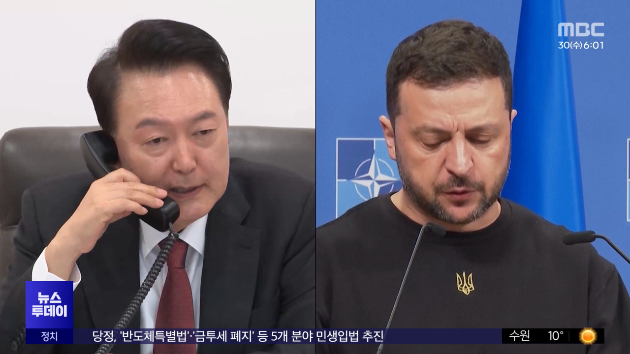 윤, 젤렌스키와 통화‥"러·북 군사 야합 좌시 안 해" ◀ 앵커 ▶윤석열 대통령이 젤렌스키 우크라이나 대통령과 통화하며, "러시아와 북한의 군사적 야합을 좌시하지 않겠다"는 입장을 밝혔습니다 ◀ 리포트 ▶대통령실은 윤석열 대통령이 볼로디미르 젤렌스키 우크라이나 대통령과 북한의 러시아 파병에 대한 대응 방안을 논의했다고 밝혔습니다 이를 위해 조만간 한국에 특사를 파견하는 등 양국 간 전략적 협의를 추진해 나가기로 했습니다 https://imnews.imbc.com/replay/2024/nwtoday/article/6651131_36523.html 미 대선 일주일 앞두고‥'이민 문제' 난타전 트럼프는 해리스를 비난하며, 이민범죄조직의 자산을 압류해 범죄 피해자를 돕겠다고 선언했고, 해리스는 트럼프의 찬조 연설자가 한 이른바 쓰레기섬 발언을 쟁점화했습니다 해리스 측은 트럼프의 뉴욕 유세에서 나온 발언을 문제삼았습니다 "트럼프 측은 "문제의 농담"이라고 표현하며, 트럼프의 시각이나 입장과 무관하다고 해명했지만, 불과 1주일 남은 대선에서 중대한 변수가 될 수 있다는 관측이 나옵니다 https://imnews.imbc.com/replay/2024/nwtoday/article/6651144_36523.html "여사님이 김영선 걱정 말라고" 명태균 녹취로 본 공천 과정 명태균 씨는 김영선 전 의원의 보좌진이던 강혜경 씨에게 전화해서 이렇게 말합니다 "김건희 여사가 김영선 전 의원의 공천 걱정은 하지 말라고 했다는 겁니다 [명태균 씨]"아침에 다 보류시켰다 https://imnews.imbc.com/replay/2024/nwdesk/article/6651061_36515.html