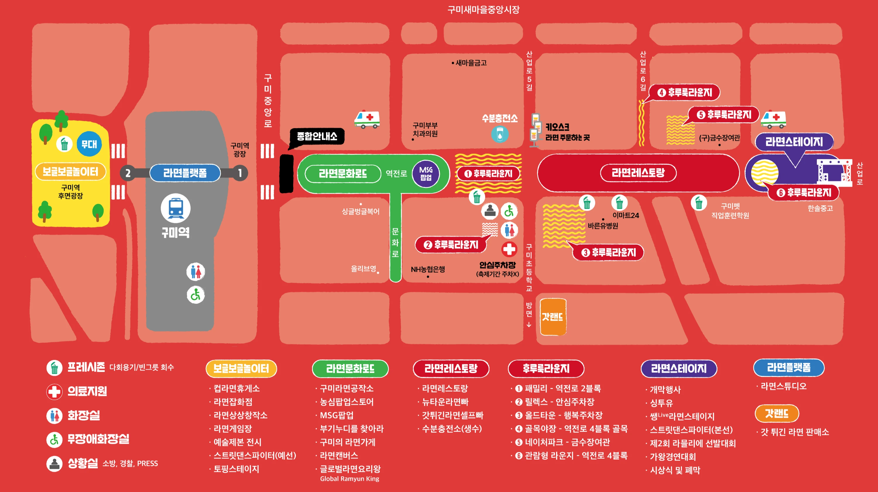 구미시는 1991년부터 생산을 시작한 농심 라면 공장이 있어 “공장에서 갓 튀긴 라면을 맛볼 수 있다”는 아이디어에 착안해 지난 2022년 구미라면축제가 시작되었다. 2025년 올해는 10/30(금)~11/2(일), 3일간 구미역 일원에서 진행된다.