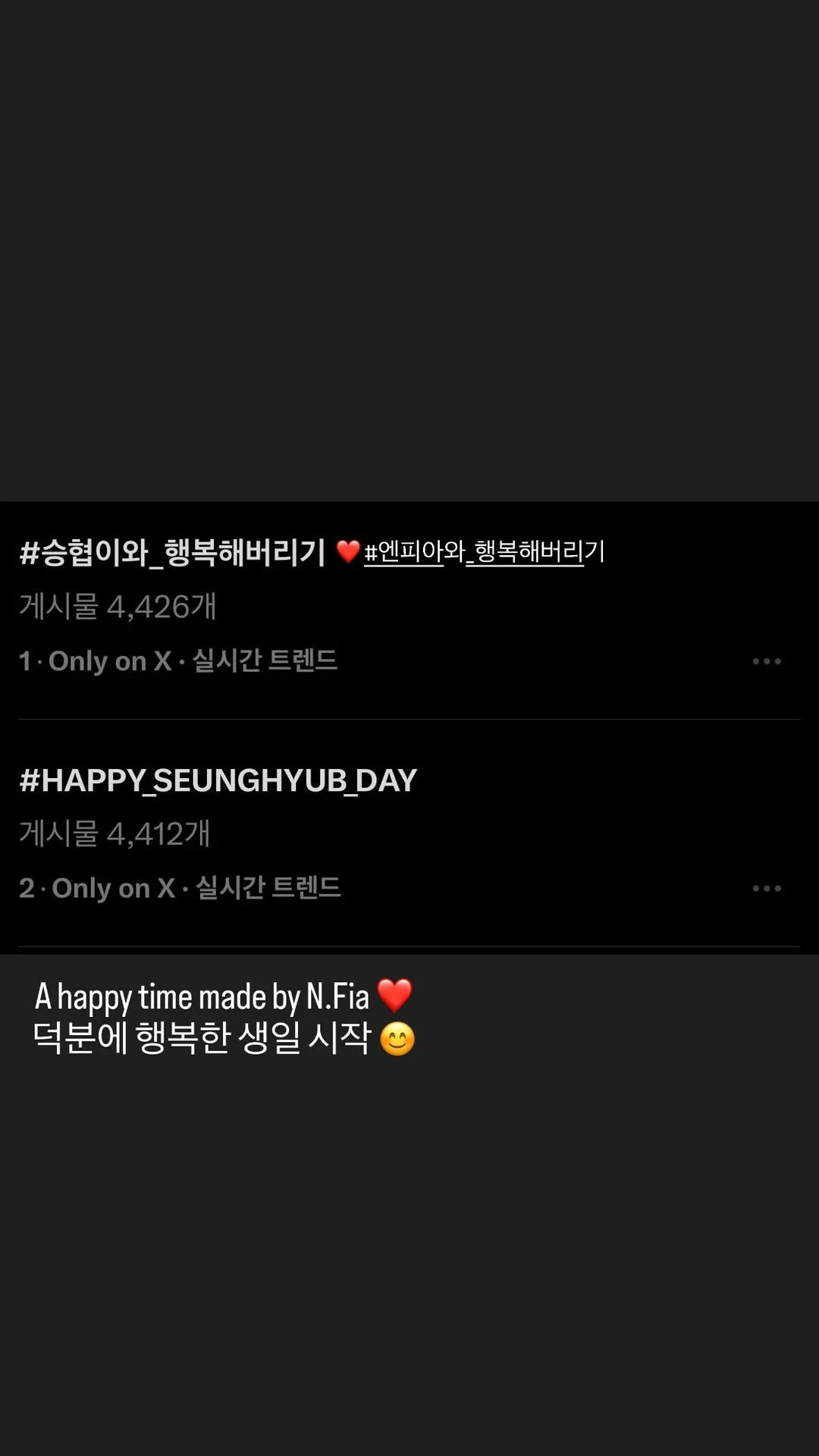 승협's Birthday [승협. FNC공트] 생일 축전 @00:00 [승협. 재팬 공트] 생일 축전 @00:00 [NF. 공트] 📸 - 🐻‍❄️승짱 생일 좋은데~?🎂 @01:27 [NF. 공카] [STAFF DIARY] 💜Happy Seung Hyub Day💜 @15:00 m.cafe.daum.net [승협. 개인 인스타] 스토리 - A happy time made by N.Fia ❤️ 덕분에 행복한 생일 시작 😊 @15:52 [훈. 개인 인스타] 스토리 - 사랑하는 우리 형 생일 축하해😻 @16:36 [동성. 개인 인스타] 스토리 - 낚시왕이 될 사나이 @16:36 [NF. 공연] 구미 케이팝 콘서트 @19:00 🔗 셋리 보러 가기 [NF. 공트] 📸 - 2025 구미 K-POP 콘서트 @20:13