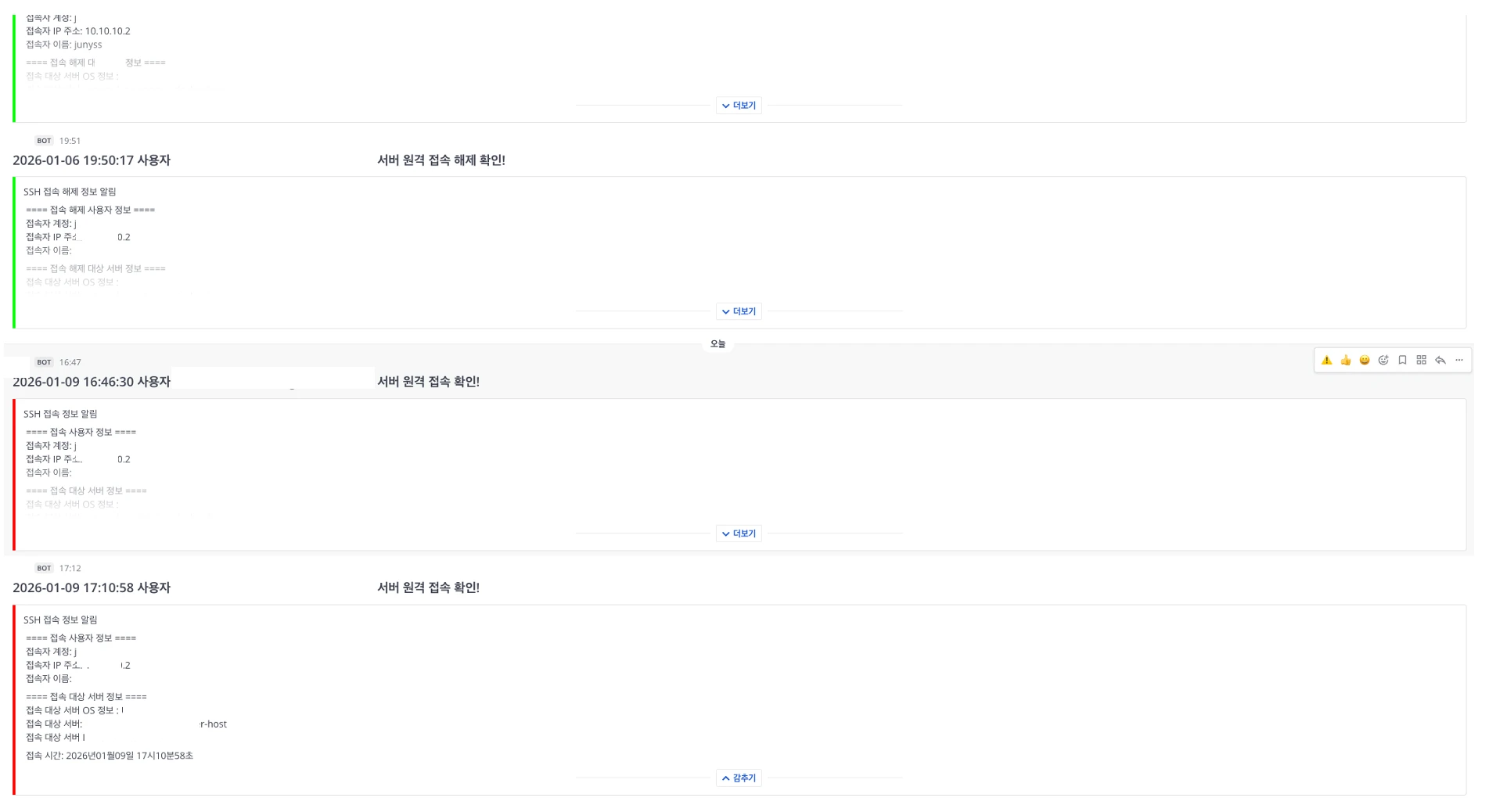제대로된 인프라 속에서 활동해 보고 싶지 않으세요? 우리 모임은 실제 업무 환경에서 사용하는 IT 인프라를 구축하고, 제공해 드리고 있습니다. 이를 기반으로 이러한 시스템을 어떻게 구현해야 할지도 배울 수 있습니다. ✅ 가상환경 인프라 제공 실제 업무를 위해 사용하는 서버는 일반 PC와 다르게 많은 서비스를 구현할 수 있도록 풍부한 자원(CPU, RAM, Storage)를 보유해야 합니다. 이러한 환경에서 여러분이 실습하는 동안 필요한 서비스를 제공합니다. ✅ 네트워크 환경 구성 제대로된 프로젝트 진행을 위해 Gbps 급 인터넷 환경에서 외/내부망을 안전하게 분리하고, 외부 침입을 실시간으로 모니터링하여 안전한 스터디가 진행될 수 있도록 지원합니다. ✅ 모니터링 환경 구성 고생해서 만든 서비스를 제대로 운영하려면 모니터링은 필수에요. 우리 모임은 웹훅과 메일로 서버 상태를 알려 주도록하고, 이를 기반으로 유지보수를 진행하고 있어요. 이러한 실전 노하우를 전수 받고, 앞으로의 여러분의 기술력을 높여 보세요.