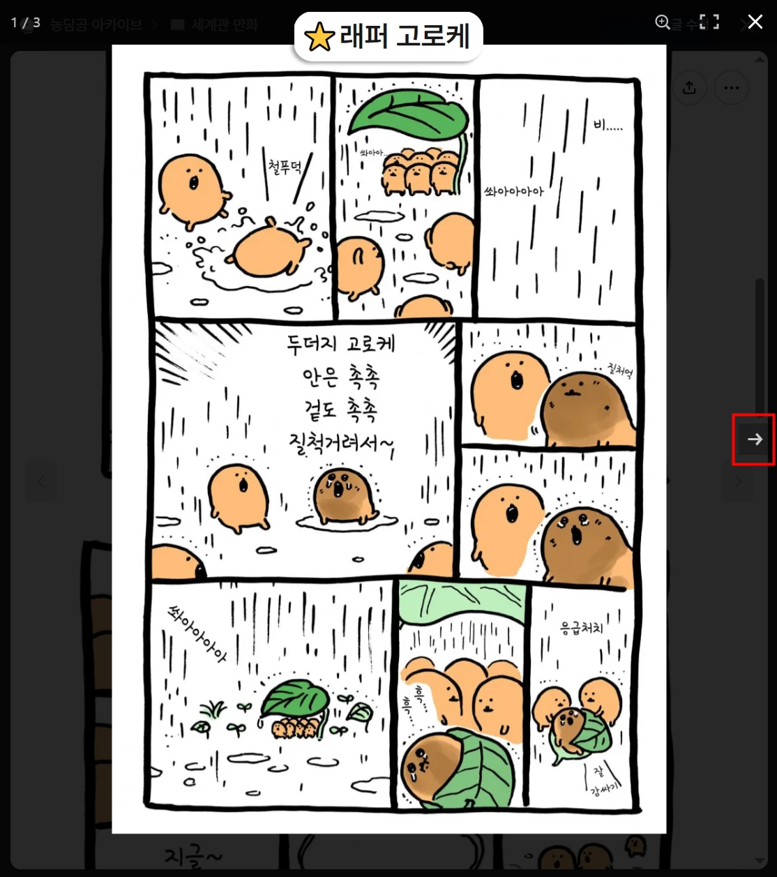 모바일 웹에서는 만화를 보고 돌아오면