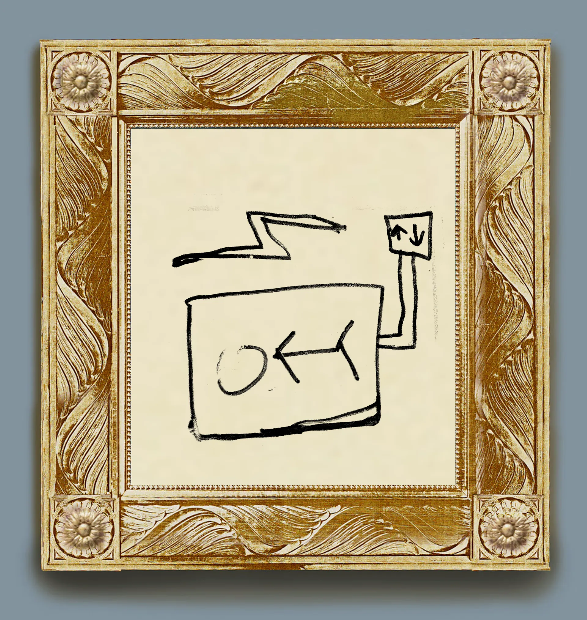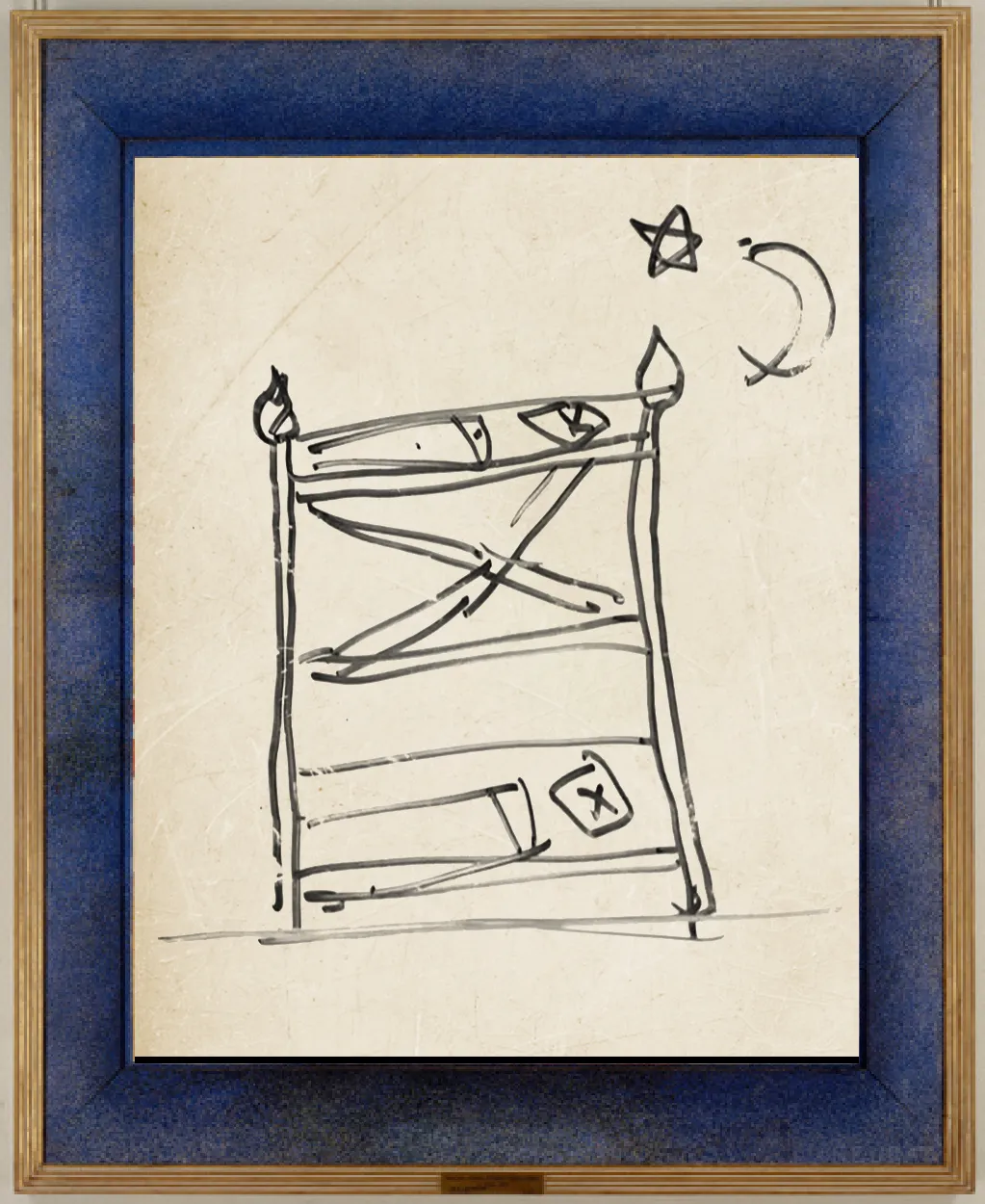 Cette œuvre se distingue par un dessin aux lignes épurées et à la texture rugueuse, portant une signification profonde dans des formes simples. Les points éparpillés de manière grossière et le flux légèrement imparfait des lignes créent une tension à la fois naturelle et intentionnelle