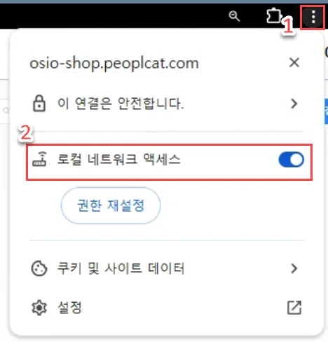 로컬 네트워크 액세스 설정을 활성화 해주세요.