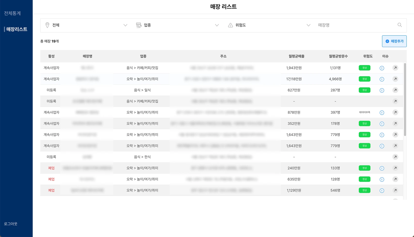 우측 상단에 있는 [매장추가] 버튼을 클릭해 주세요.