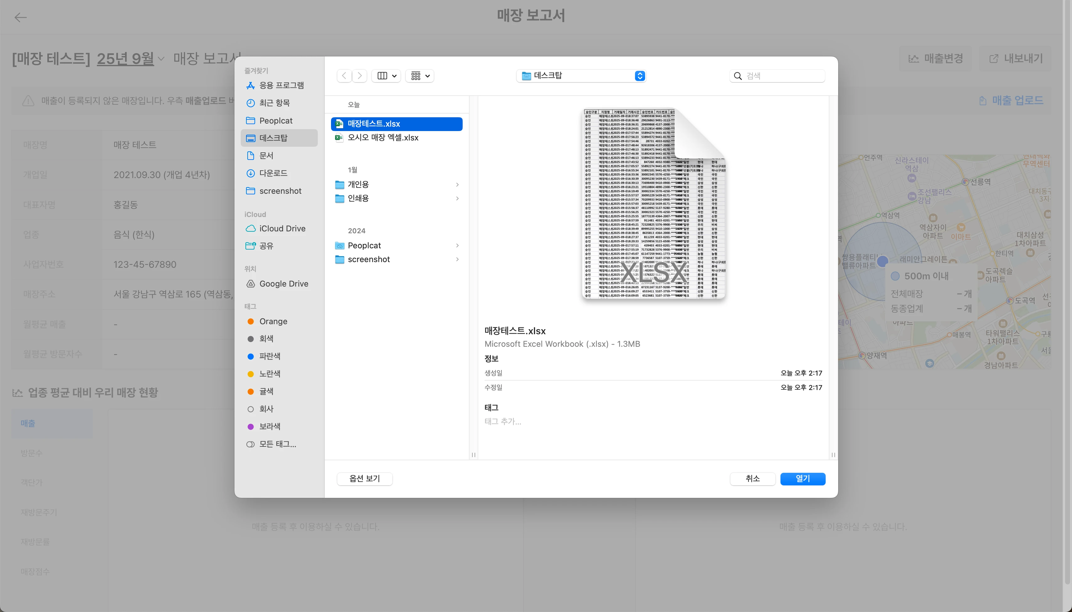 엑셀 파일을 열어 매장의 POS 데이터를 불러와 주세요.
