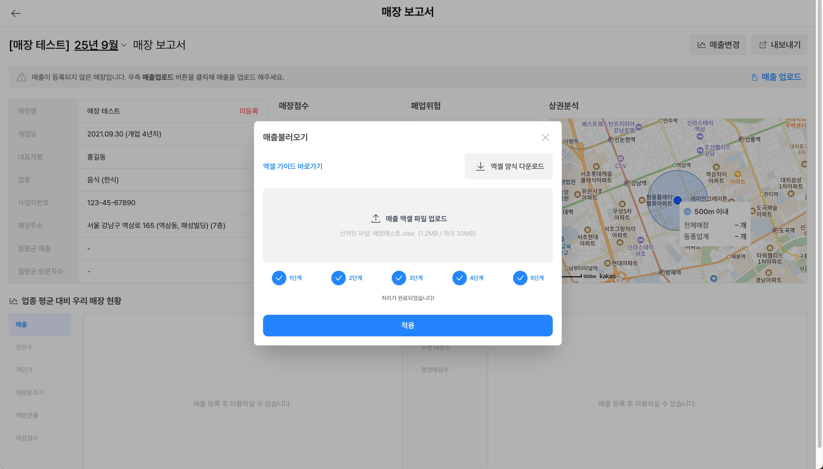 적용완료 시, 새로고침 후 매장보고서를 확인하실 수 있습니다.