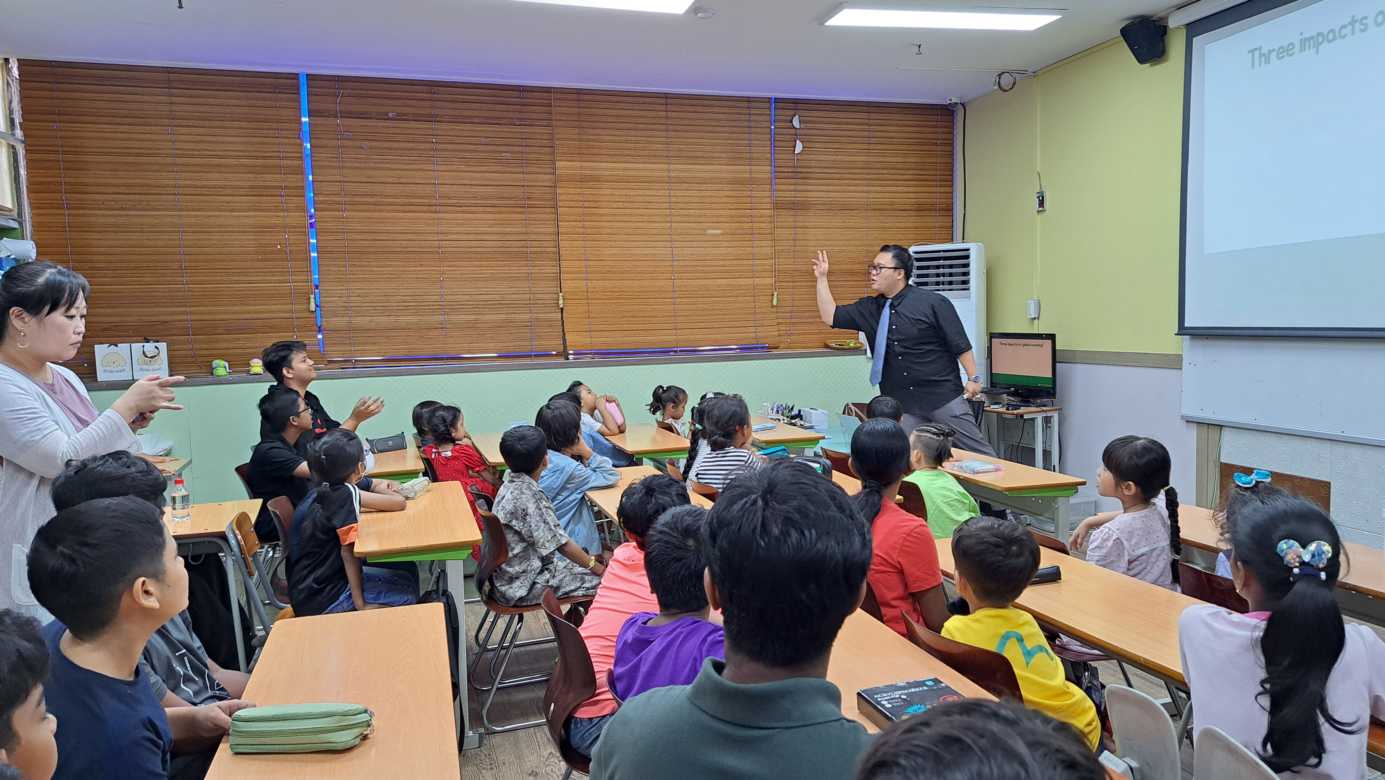 [PD캠퍼스] 2025 선화PD캠퍼스] 2025 선화예고 환경강의 with ECO CEO🌳 : 피스디자이너의 활동 소식학교로 찾아가는 피스디자이너 !😀🏫 지난 10월 17일(금), 선화예술고등학교 학생들을 대상으로‘사막화’를 주제로 한 환경 강의가 진행되었습니다!그리고 이번에 환경강의를 해주신 강사님은 바로...ECO CEO 김현태 대표님께서 맡아주셨으며,주제가 사막화인 만큼 아주 뜨겁게 열정적으로 강의를 해주셨습니다!🔥대표님께서 사막화 관련 최신 뉴스와 영상들을 소개하며✔ 사막화가 얼마나 빠르게 확산되는지✔ 우리가 체감하지 못하는 사이 얼마나 위험이 가까워지고 있는지를 생생하게 전달해 주셨습니다.특히, 올해 실제로 발생했던 강릉 가뭄 사례를 통해사막화와 기후위기가 결코 먼나라 이야기가 아니라는 것을 학생들이 직접 느껴볼 수 있는 시간이었습니다.중간중간 진행된 환경 퀴즈도 큰 호응을 얻었습니다!정답을 맞힌 학생들에게는 귀여운 북극곰 비누🐻❄️가 선물로 전달되며 더욱 즐거운 분위기가 이어졌습니다.열정 가득한 강의를 통해 사막화의 심각성과 우리가 환경을 지켜야 하는 이유를 깊이 이해할 수 있는 뜻깊은 시간이었습니다.마지막으로, 강의에 참여한 선화예고 학생들의 따뜻한 소감을 소개하며…다음에는 여러분의 학교에서 만나요! 안녕!🙌"강의를 통해 사막화라는 단어가 그저 먼 나라의 환경문제라고 생각했던 내 시선이 많이 바뀌었다.단순히 모래가 늘어나는 현상이 아니라 정말로 사람들의 삶터가 사라지는 과정이라는 걸 생생하게 느끼게 되어 경각심을 가지게 되었다.특히 인간의 잘못된 개발이 토양을 얼마나 빠르게 황폐화시키는지,그리고 그걸 되돌리기 위해 얼마나 많은 시간과 노력이 필요한지를 들으니 조금 막막하기도 했다.하지만 어쩌면 우리 모두 이런 문제에 대해 깨어있는 의식을 가지고 았다면, 우리 주변의 것들 부터 하나씩 차차 바꿔 나갈 수 있게 되지 않을까라는 생각이 들었다. 세상의 많은 것들이 지나치게 빠르게 변하는 사회속에서 환경애 대한 변치 않는 관심을 가져야겠다. ""사막화 문제에 대해 자세히 알려주셔서 문제점과 심각성에 대해서 정확하게 인지하게 되었고다음 시간에 기회가 된다면 다른 주제로도 환경 교육을 받으면 좋을 것 같다는 생각을 했습니다. ""강사분이 열정적이셔서 집중이 잘되었고, 환경 보호의 필요성에 대해 더 깊이 알게되었습니다. "