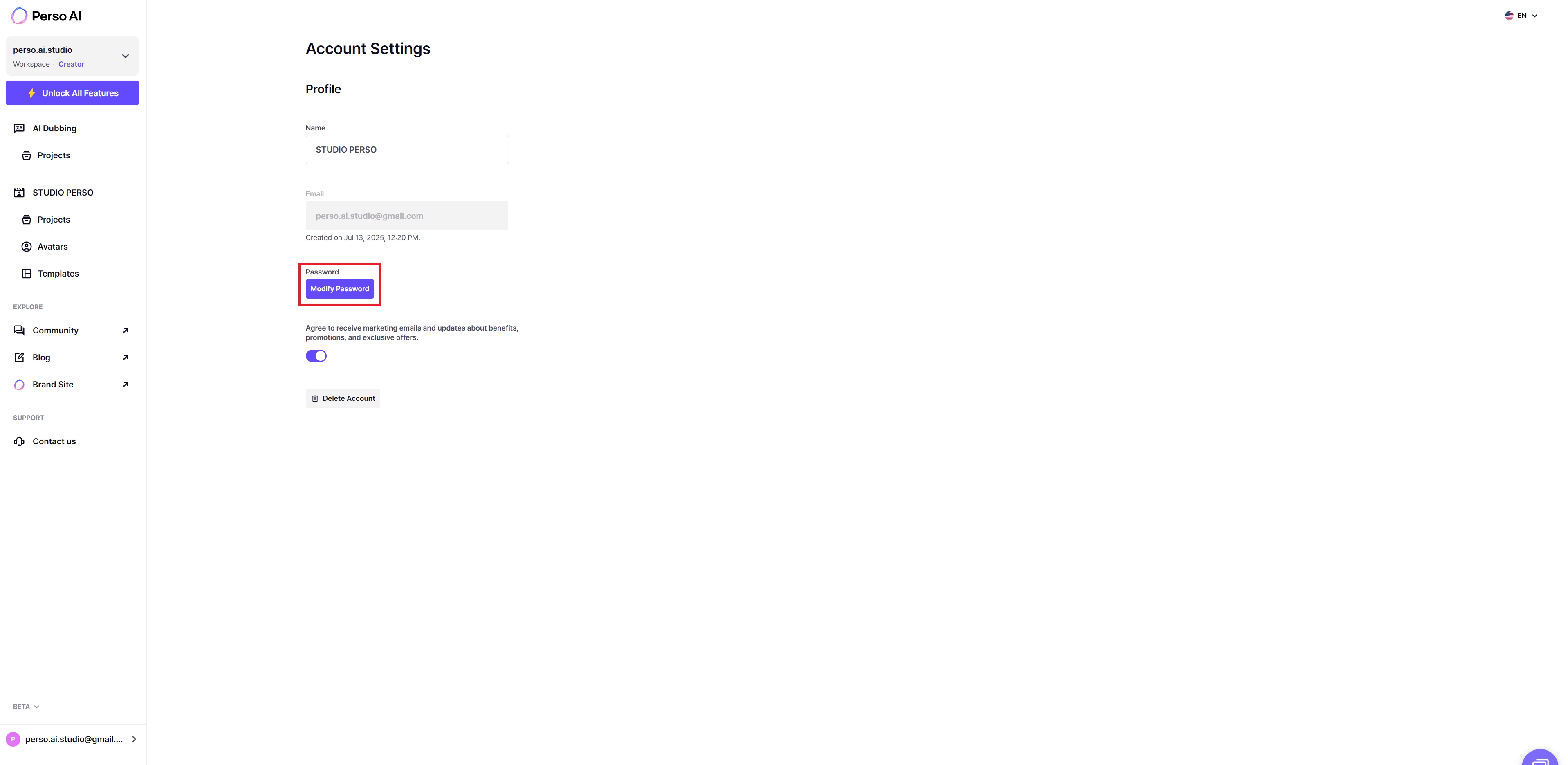 ๋๋ค. ์ด๊ณณ์์ AI Dubbing๊ณผ STUDIO PERSO ๋ฑ ์ฃผ์ ๊ธฐ๋ฅ์ ์ด์ฉํ ์ ์์ผ๋ฉฐ, ๊ฐ์ธ ๊ณ์ ๊ด๋ฆฌ ๊ธฐ๋ฅ๋ ํฌํจ๋์ด ์์ต๋๋ค. 1๏ธโฃ Workspace์ ๊ฐ๋