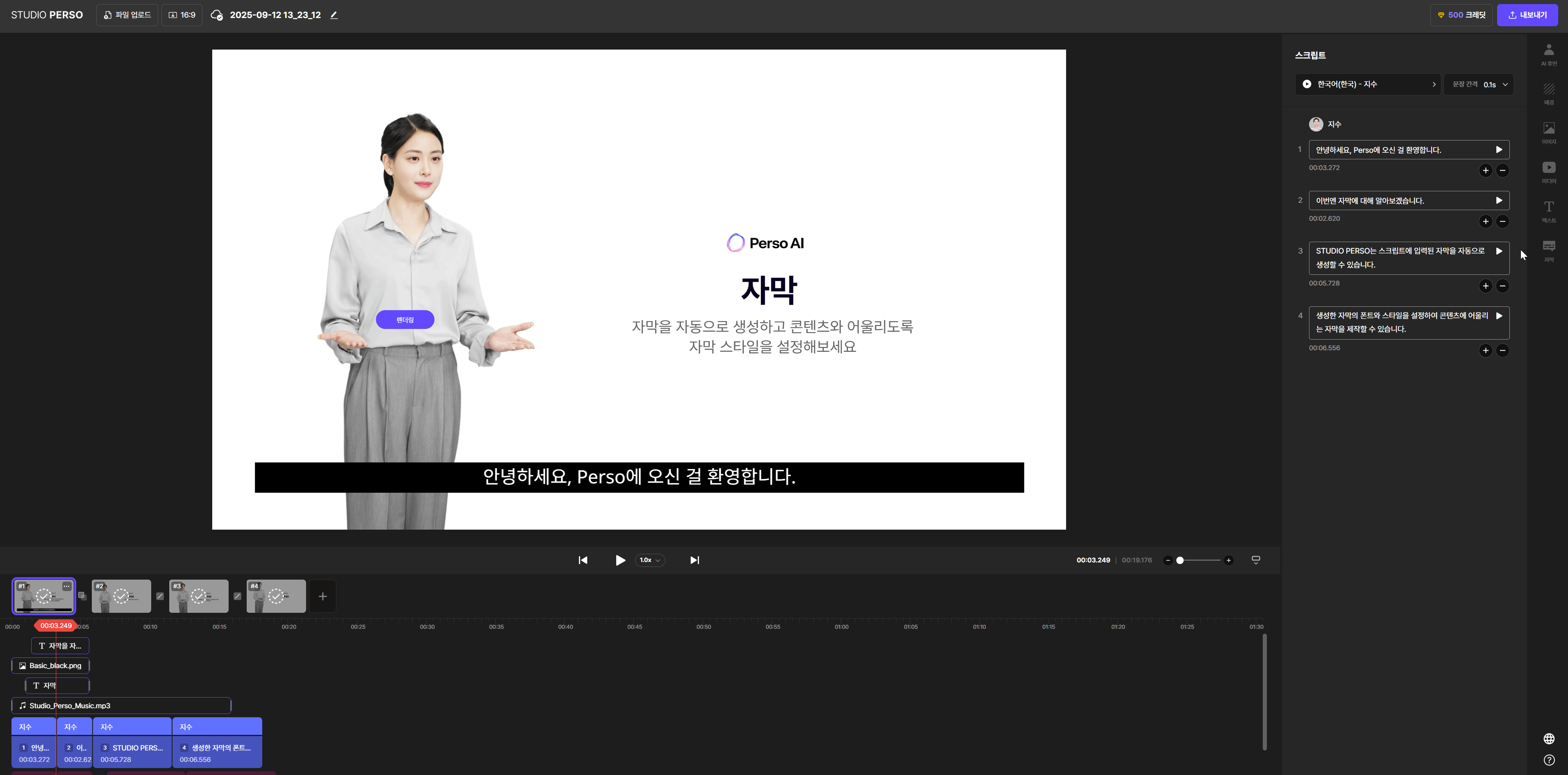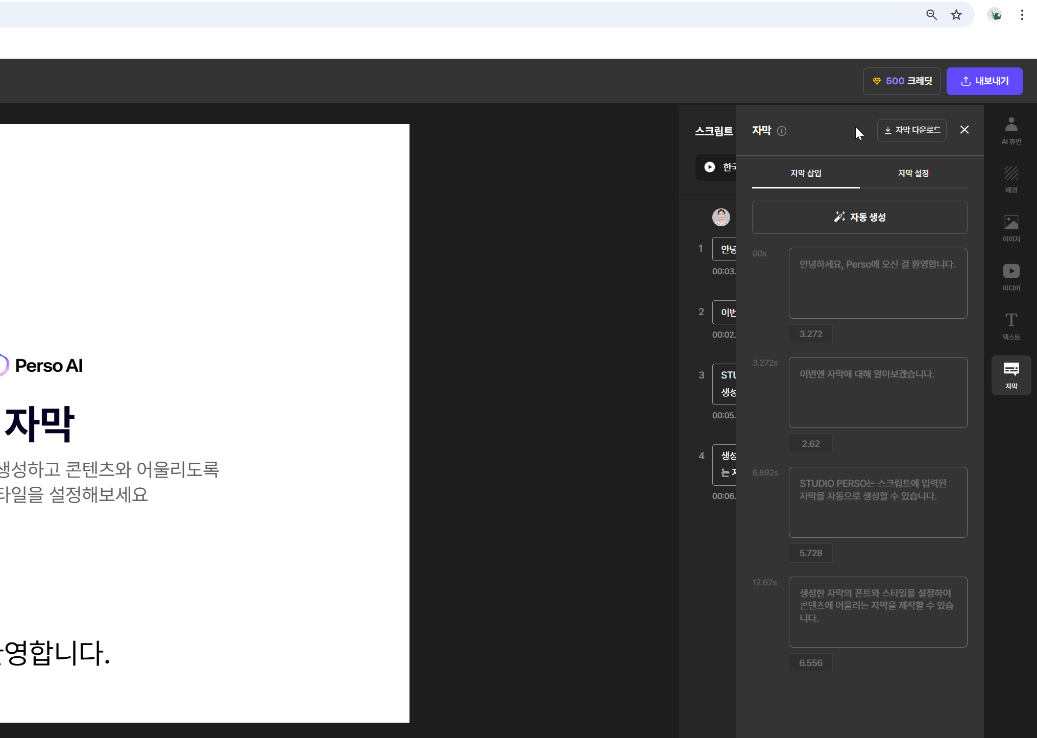 STUDIO PERSO는 AI 휴먼을 활용한 영상 제작 서비스입니다. 기존 영상 제작처럼 촬영, 편집, 음성 녹음 등의 복잡한 과정 없이도 빠르고 간편하게 고퀄리티 영상을 만들 수 있습니다. STUDIO PERSO의 핵심 기능은 뭔가요? 스크립트 입력 → 텍스트 입력만으로 AI 휴먼이 자연스럽게 말하는 영상을 제작합니다. PPT 업로드 → 기존 발표 자료를 영상 콘텐츠로 변환합니다. 다양한 시각적 효과 추가 → 텍스트 효과, 배경 변경, 자막 삽입 등 다양한 효과를 추가할 수 있습니다. STUDIO PERSO를 어떻게 활용하나요? 기업 프레젠테이션 → PPT를 업로드하여 전문적인 프레젠테이션 영상 제작할 수 있습니다. 온라인 강의 & 교육 콘텐츠 → AI 휴먼을 통해 신뢰도 높은 교육 영상을 빠르게 제작할 수 있습니다. 인터뷰 & 뉴스 → '정장' 착장 + '진지함' 포즈를 통해 신뢰도 높은 영상 제작할 수 있습니다. 마케팅 & 광고 → '캐주얼' 착장 + '자연스러움' 포즈를 통해 제품 정보를 보다 자연스럽고 매력적으로 전달할 수 있습니다. 관련 문서 STUDIO PERSO에서 제공하는 AI 휴먼이란 무엇인가요? PPT 파일 업로드는 어떻게 하나요? 텍스트 업로드는 어떻게 하나요? 입력한 스크립트의 자막은 어떻게 추가하나요? 배경 화면을 적용할 수 있나요?