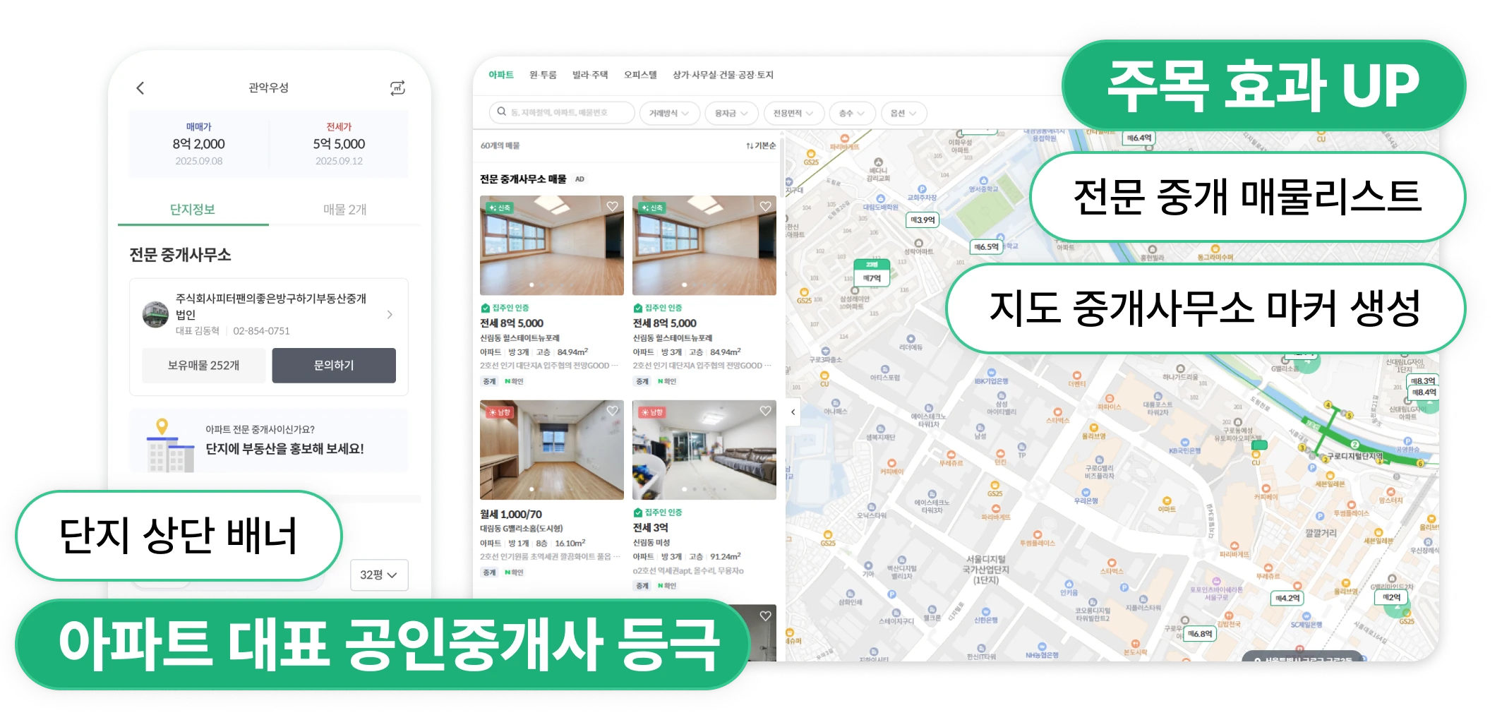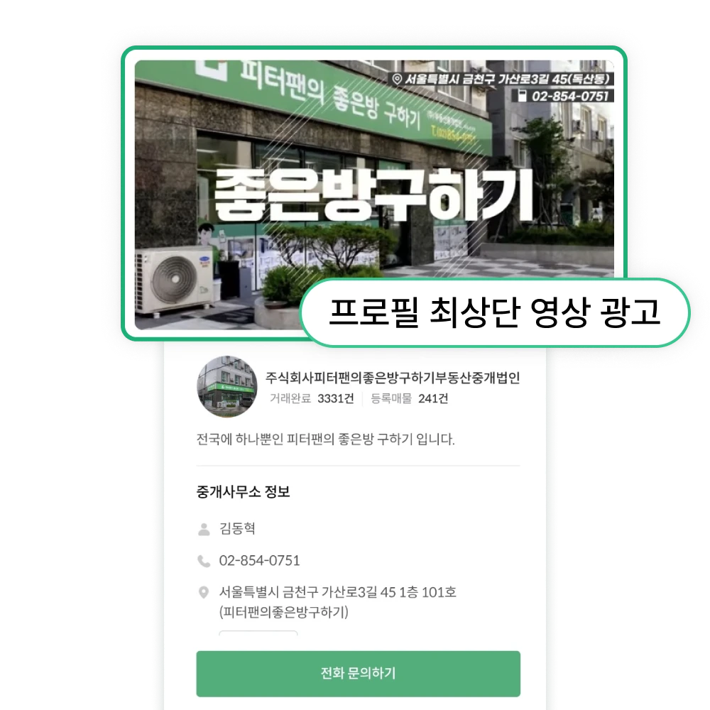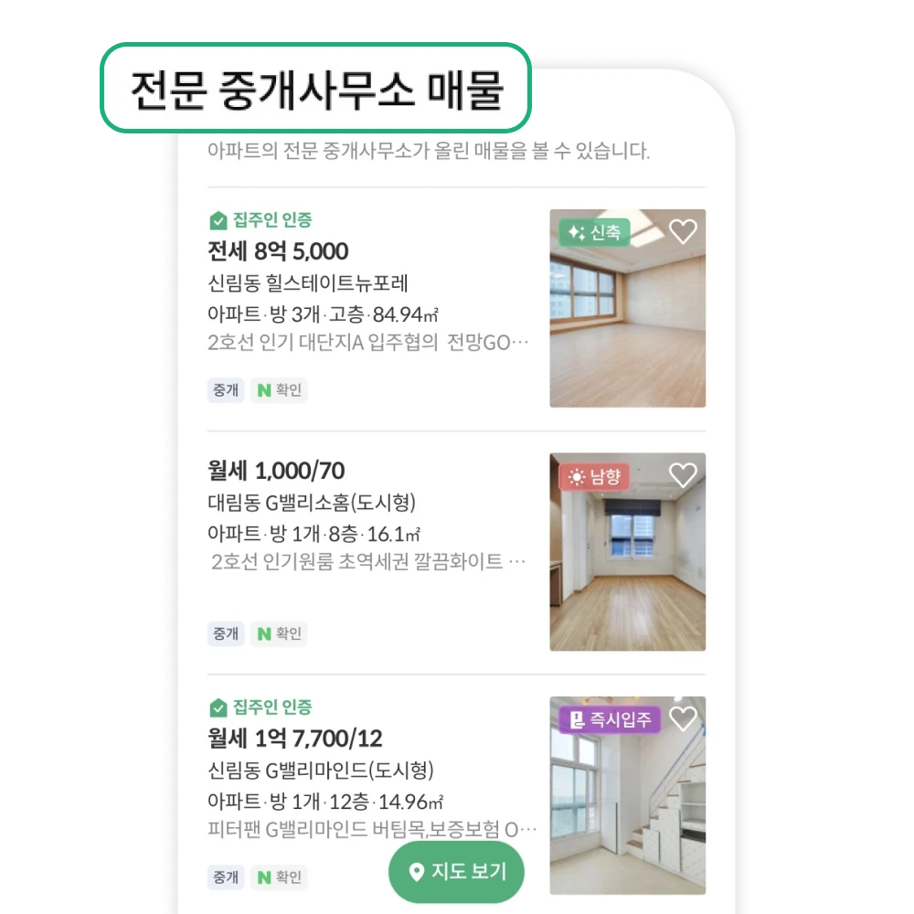 아파트 매물리스트의 최상단에 매물을 노출할 수 있어요. 고객을 더 많이 만나볼 수 있습니다.