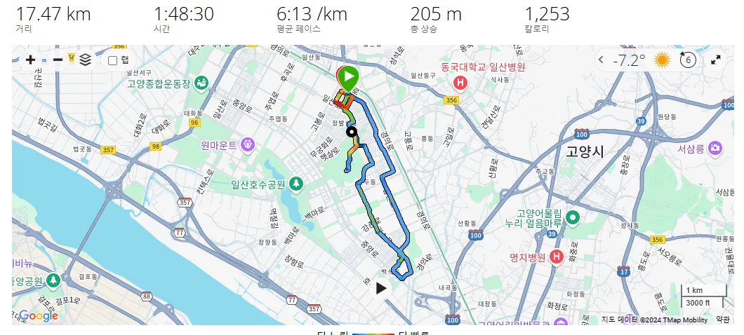 ⏰ AM 4:37 👟 아디오스프로3 🏃352.79km 오늘도 아르기닌 한 포를 섭취하고 출발! 집에서 백석동까지 천천히 조깅하며 몸을 풀었다. 자극을 더 주기 위해 정발산 언덕을 향해 뛰기 시작했다. 호흡이 살짝 거칠 정도로 정상에 올랐을 때, 눈앞에 계단이 보인다. 그냥 지나칠 수 없지! 계단을 두 번 왕복한 후, 집 주변을 2~3바퀴 돌며 심박수가 오를 정도로 페이스를 올렸다. 5분대 후반에서 4분대 중반의 속도로 3바퀴를 돈 뒤, 마지막으로 질주 3번으로 깔끔하게 마무리. 저녁 메인 훈련 프로그램은: 1200m × 1200m 변속주 4세트 + 400m 질주 1,200m는 94초와 106초의 변속 페이스로 진행. ⏰ AM 7:01 👟 베이퍼플라이3 🏃368.09km 오전에 17km를 달린 후, 저녁에는 포인트 훈련을 진행했다. 호흡이 크게 힘들지 않았고, 변속 후 충분히 회복할 시간이 있었기에 4세트까지 무리 없이 소화했다. 마무리로 400m 질주를 깔끔하게 끝내며 훈련을 마무리했다. 고양종합운동장의 열기는 뜨거웠다 #일산호수마라톤 #RUNNING #러닝 #고양종합운동장 #러너 #대구마라톤