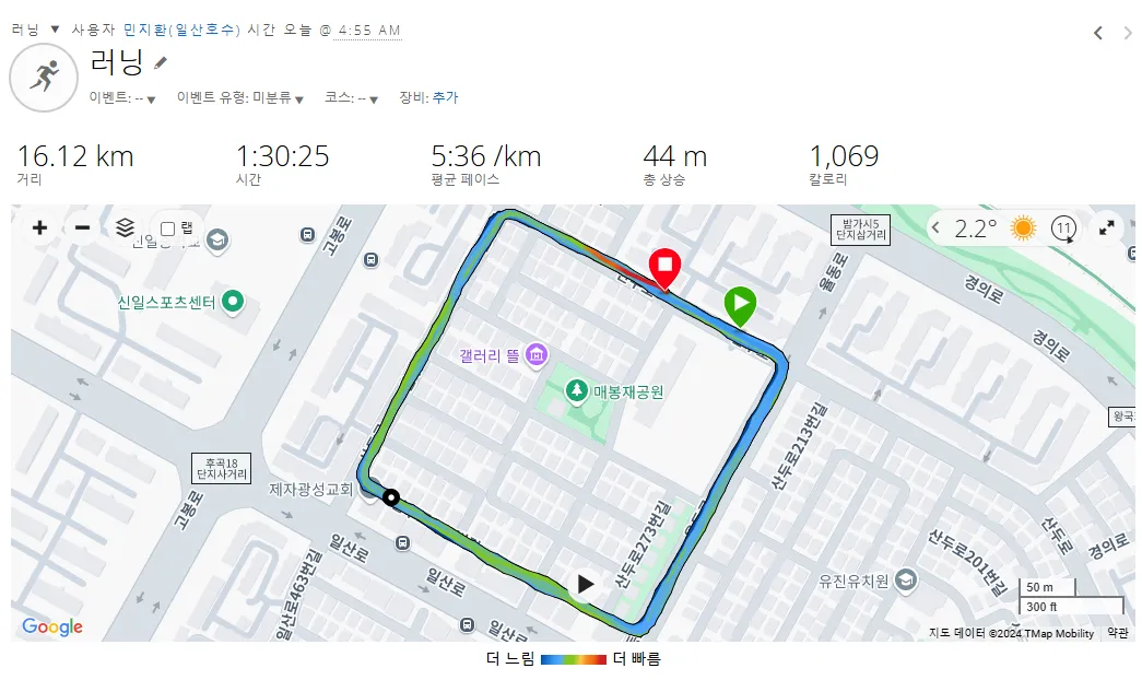 ⏰ AM 4:55 👟 아디오스프로3 🏃517.43km 500키로를 넘게 달려왔다. 새벽에 일어나기 힘들었는데, 신발 신고 나오는 순간 달리게 된다. 회복이 덜 된 듯 몸이 무겁다. 5분 중반 페이스로 떨어지거나 높아지지 않게 템포를 일정하게 가져가기로 했다. 90분 주 완료. ⏰ PM 6:37 👟 알파플라이1 🏃529.4km 와이프가 먼저 옷을 주섬주섬 입고 있다. 달릴모양이다 날도 추운데 함께 해야지. 가끔씩 달리는데도 잘 달리는 우리 와이프! 마지막 2키로 빌드업 530으로 마무리. 집으로 돌아오는 길에 가사도 잘 모르지만 함께 90년대 노래를 불렀다. 왁스의 "화장을 고치고" 오랜만에 좋았어