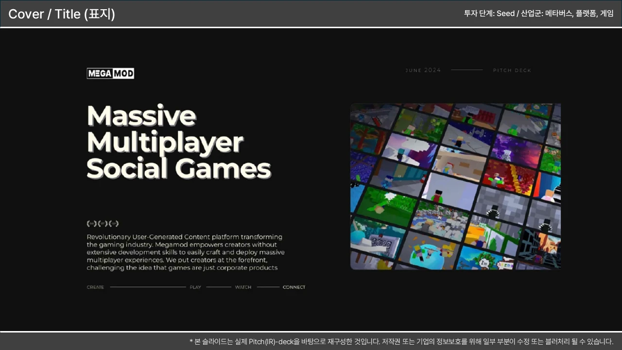매월 새로운 Pitch(IR)-deck이 업데이트 됩니다.