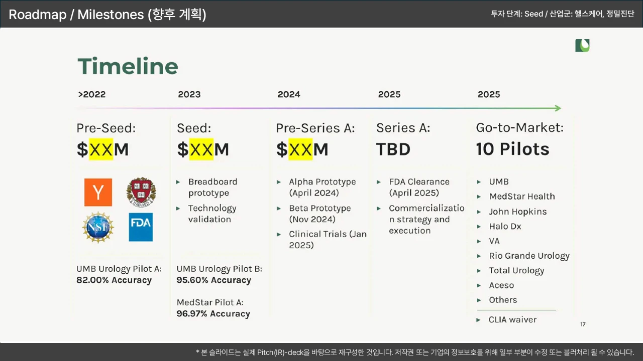 시간 축 설정 → 핵심 마일스톤 제시 → Exit 전략 시사