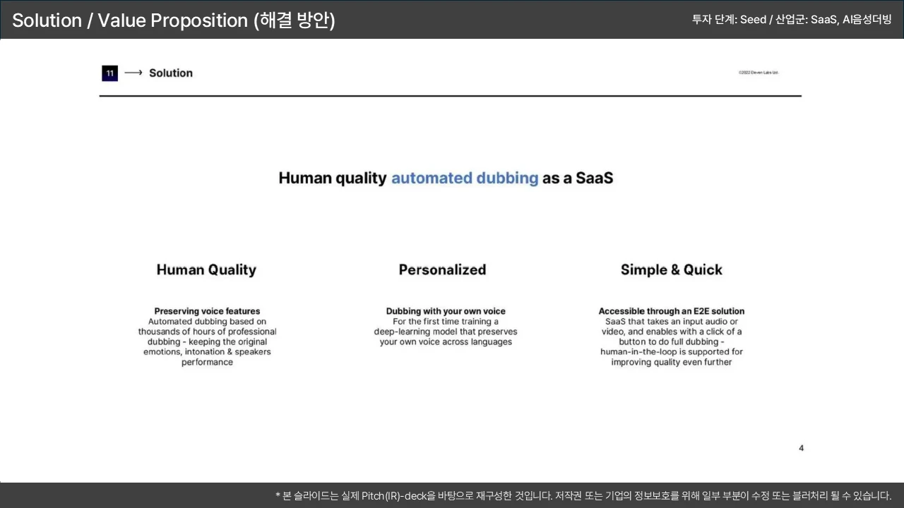 투자자 관점의 슬라이드 영역