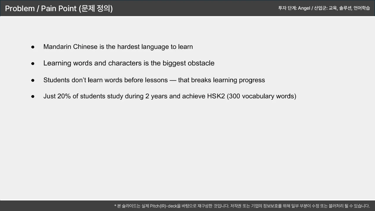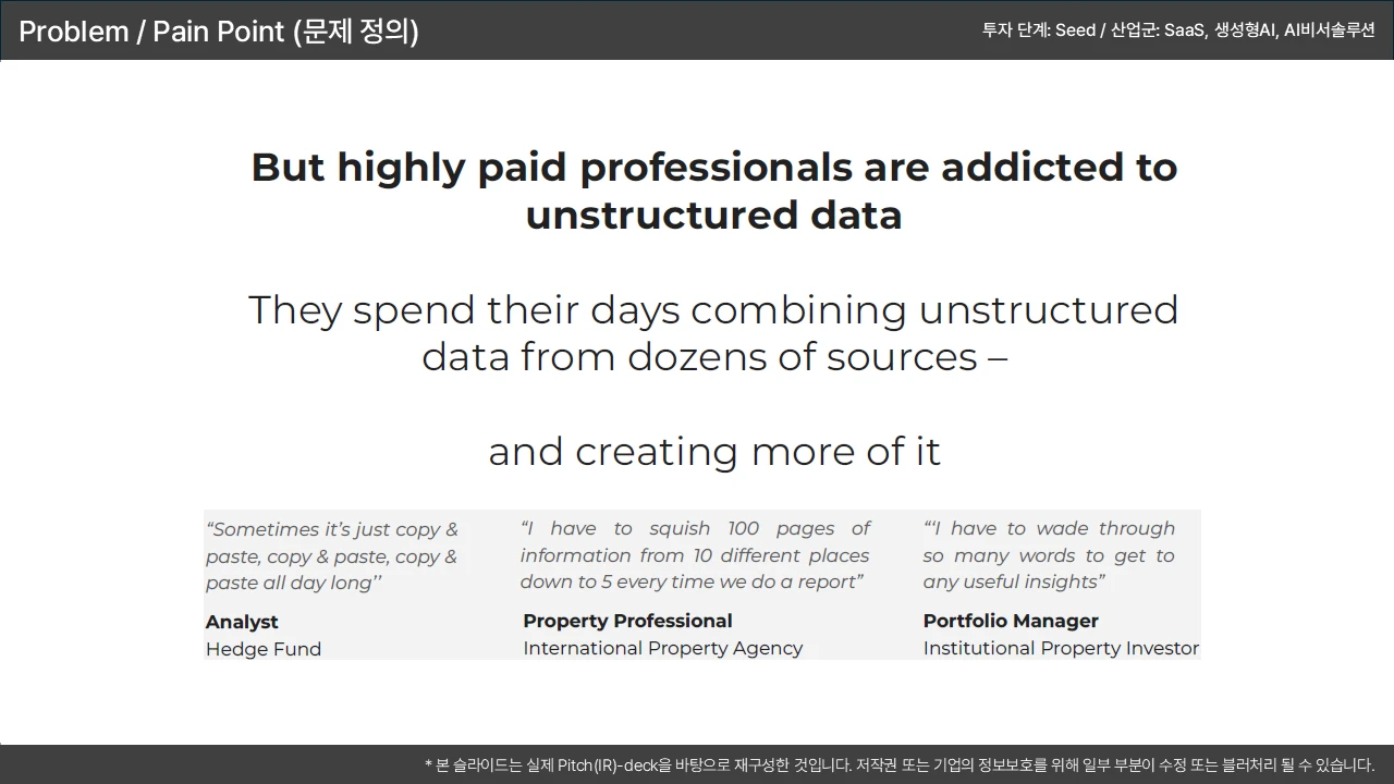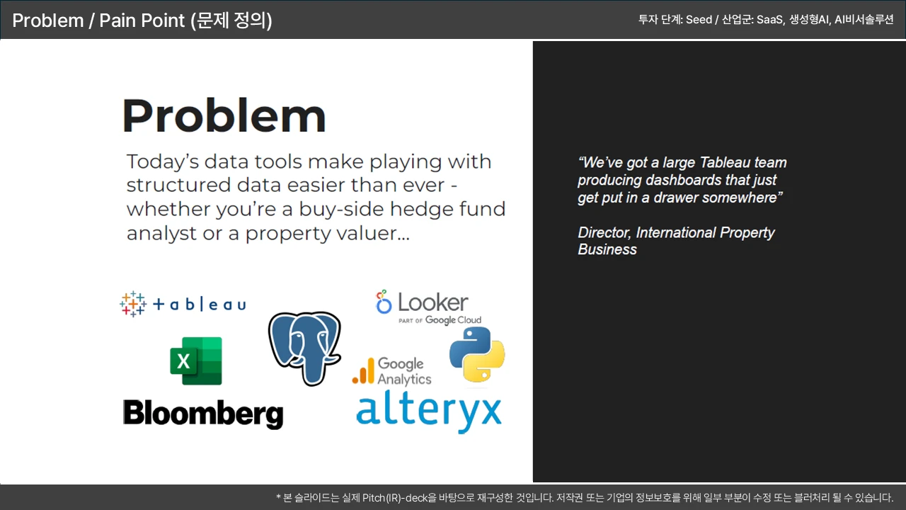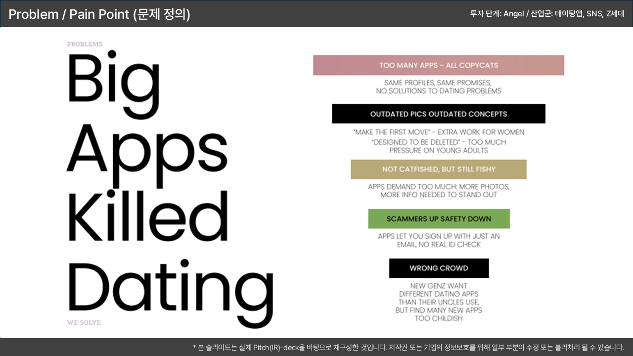 고통의 크기 → 기존 솔루션의 한계 → 우리의 기회