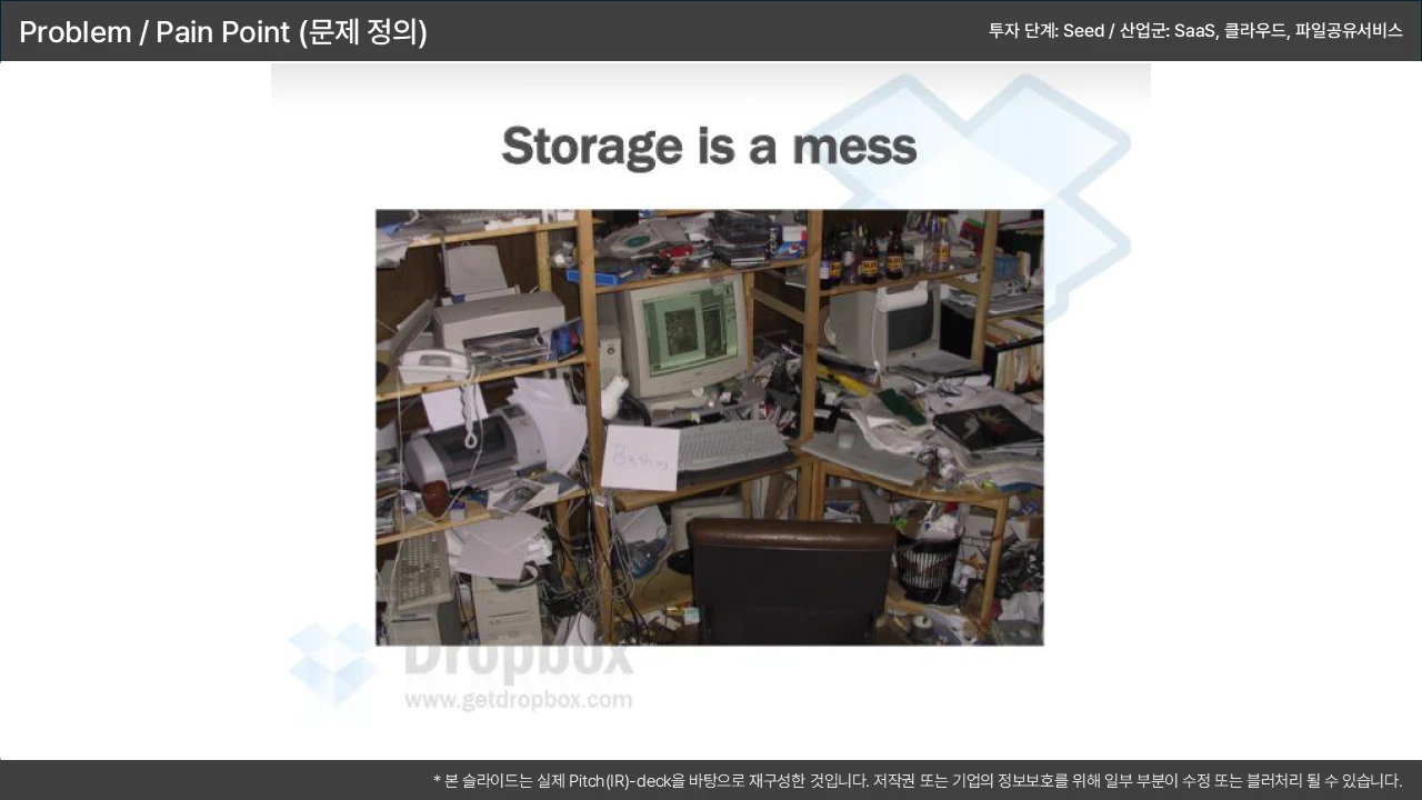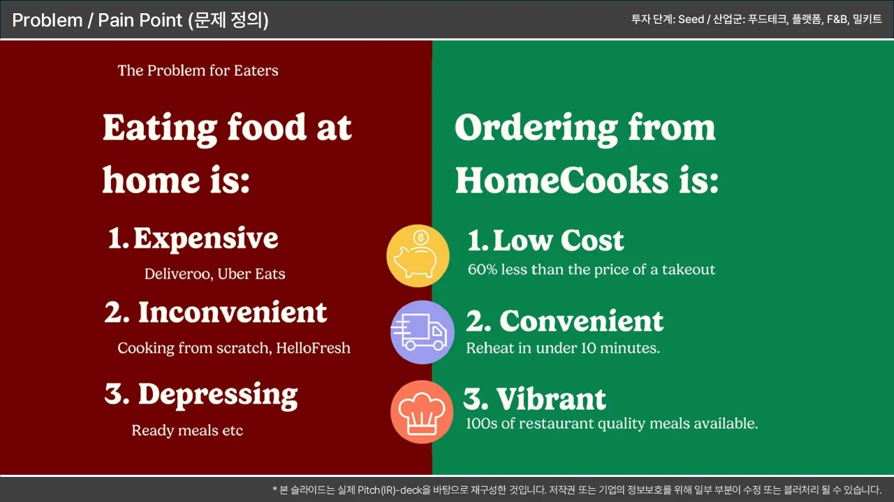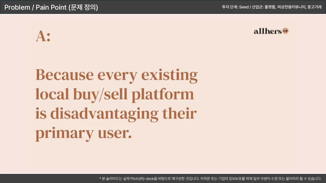 기존 솔루션의 치명적 결함을 지적하며, 시장 진입 기회를 논리적으로 연결