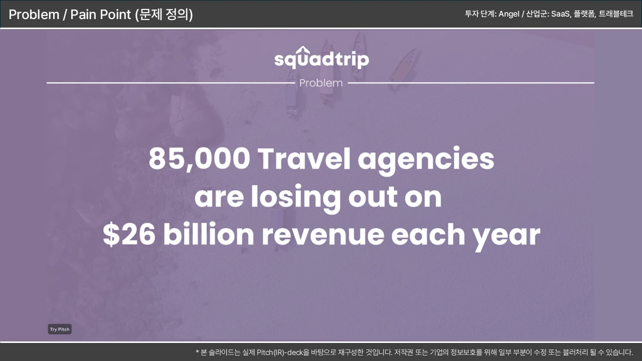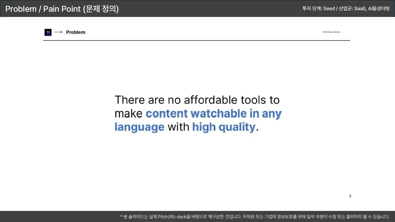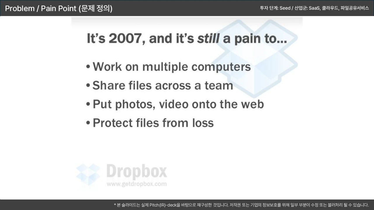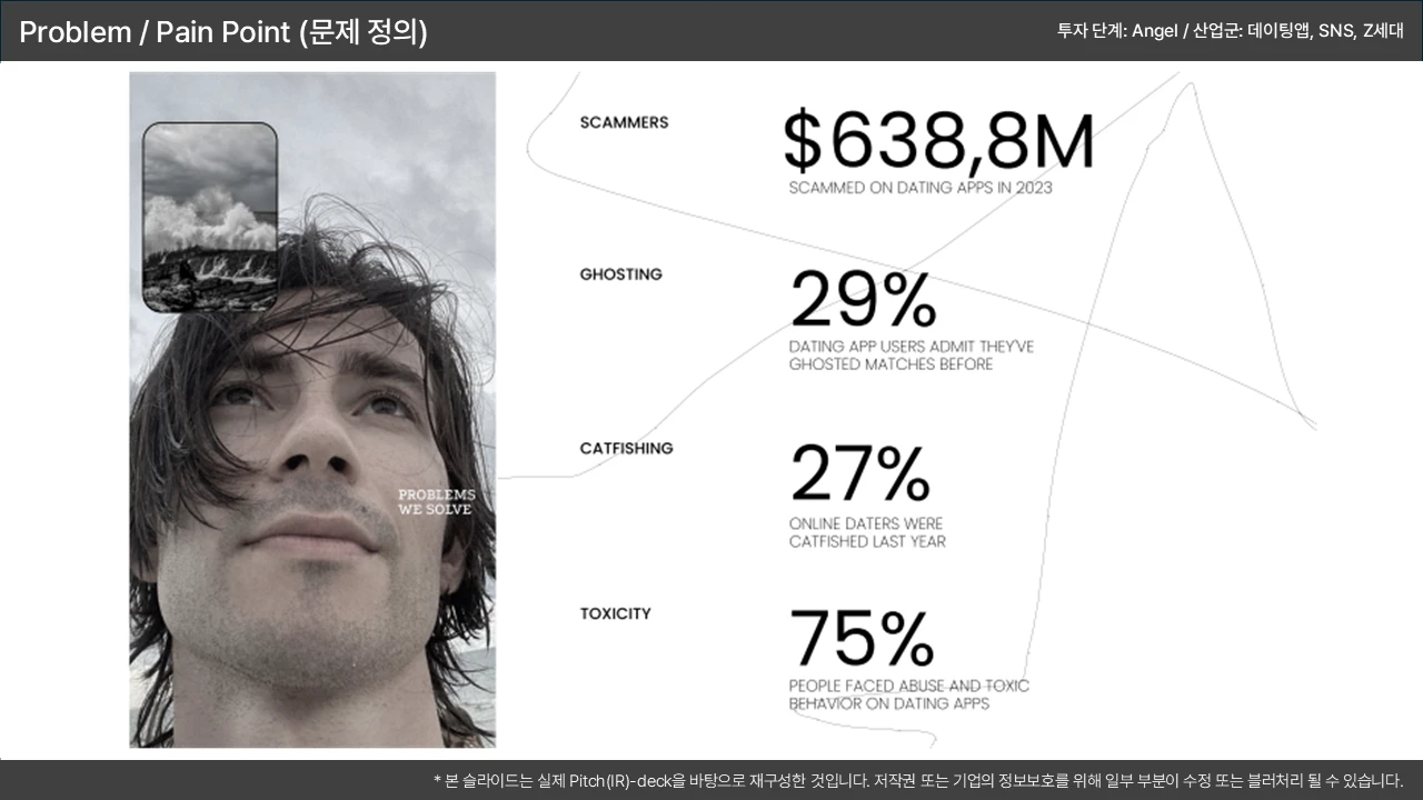 기존 솔루션의 치명적 결함을 지적하며, 시장 진입 기회를 논리적으로 연결
