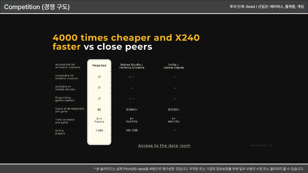 진정한 해자(Moat) 강조: 단순 기능이 아닌 특허, 독점 데이터, 네트워크 효과, 선점 효과 등 복제 불가능한 요소를 강조