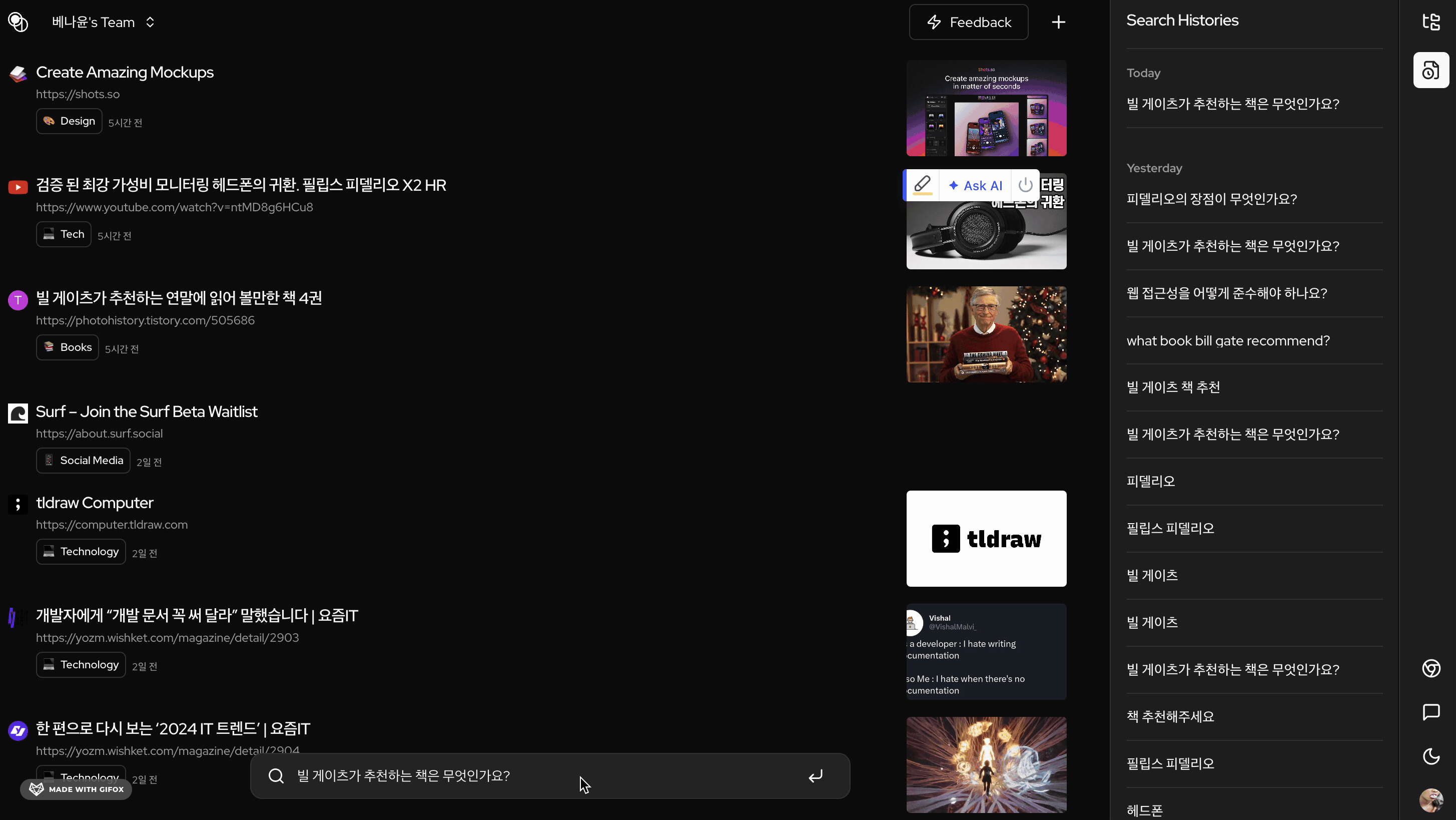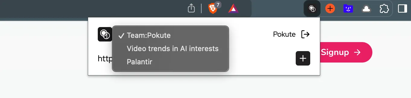 최근 웹사이트들이 정보수집 봇에 대한 대응이 강해지고 있기 때문에, 익스텐션을 통해 웹브라우저 레벨에서 더 많은 정보를 수집할 수 있습니다. Pouder에서도 크롬 익스텐션을 제공합니다. Pouder 익스텐션은 크로미움 계열 웹브라우저에서 사용가능합니다. Google Chrome Microsoft Edge Brave Arc ETC 다음 링크를 통해 익스텐션을 다운로드 하세요. https://chromewebstore.google.com/detail/pouder-chrome-extension/kmchfoknmhnlbkpklahifnppeonmhcca 익스텐션을 통한 북마크는 다음 과정을 진행하게 됩니다. 1 웹사이트에서 익스텐션 아이콘을 클릭하면 간단한 설정을 확인할 수 있습니다. 제일 중요한 부분은 (2개 이상의 팀이 있다면)팀을 선택하는 것 입니다. 팀 선택 후 + 버튼을 클릭하면 북마크가 진행됩니다. 2 북마크된 결과는 Pouder 웹사이트에서 확인할 수 있습니다. 북마크가 정상적으로 완료되었다면 자동 카테고리 설정과 요약을 확인할 수 있습니다. AI 요약은 Basic plan 이상에서 사용하실 수 있습니다. 3