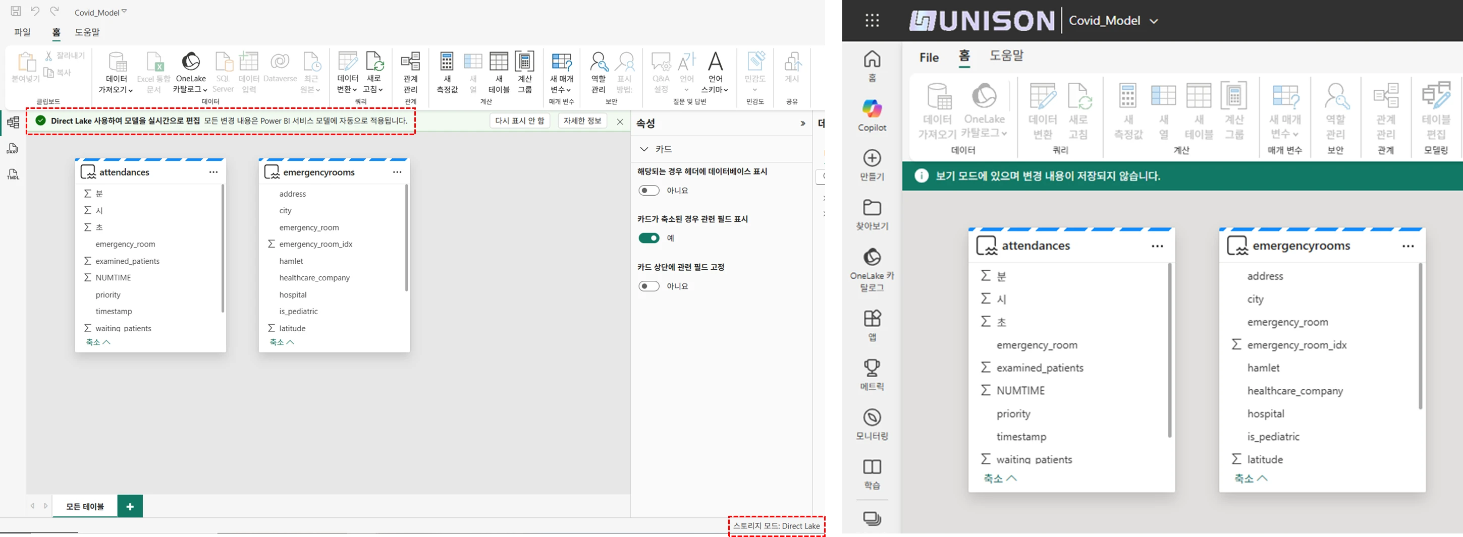 Direct Lake 모드에서 라이브 편집시 레이아웃 제한 개선