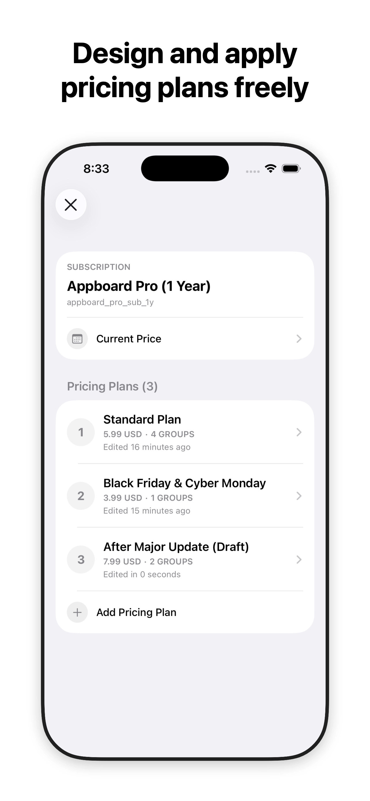 Plan, test, and refine pricing strategies for a single subscription — before you deploy.