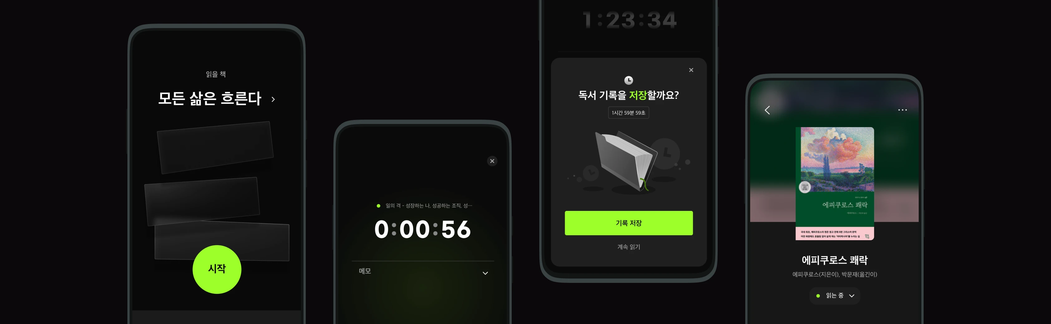 버튼 하나만 누르면 읽은 시간이 기록되고, 독서 여정을 쉽게 확인할 수 있어요