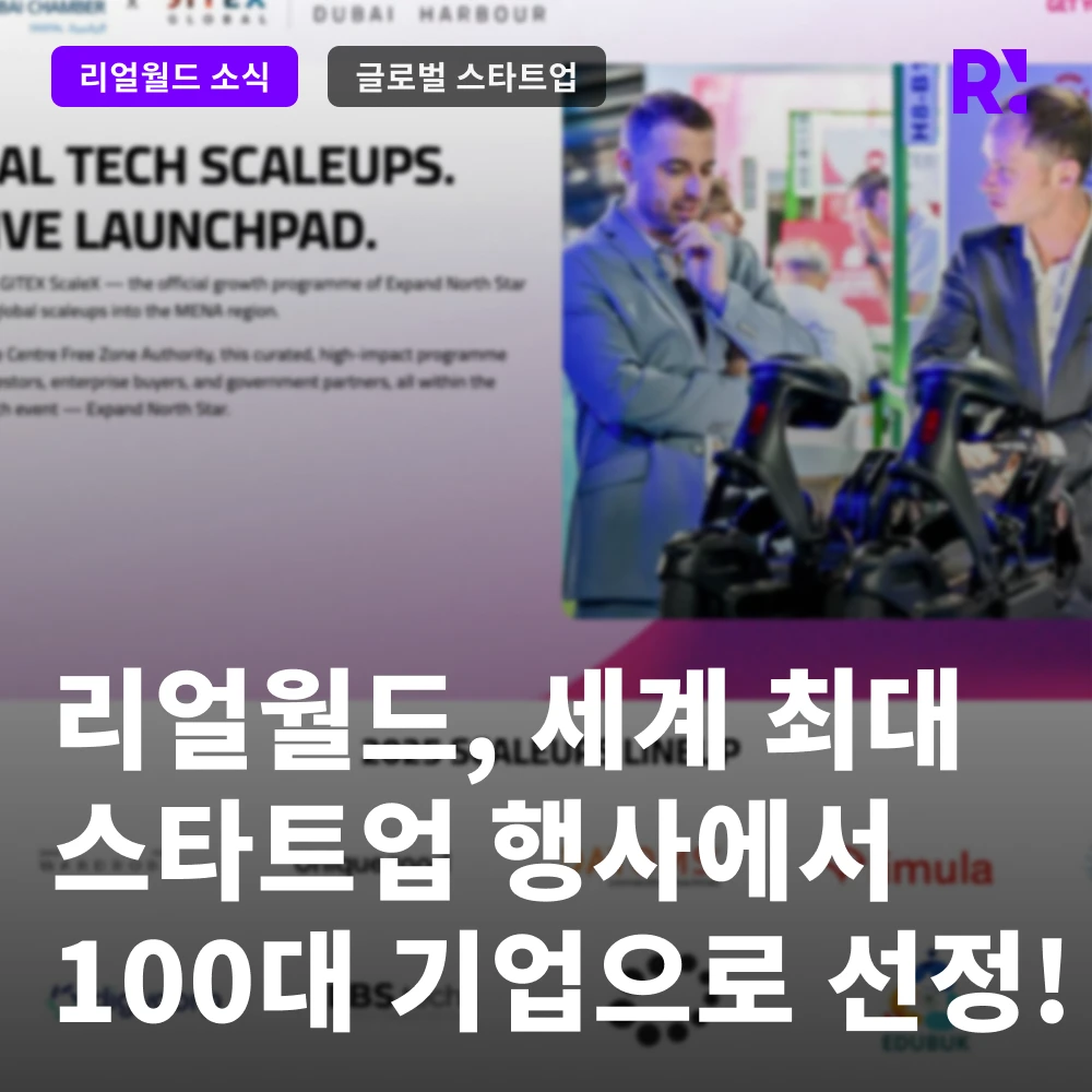세계로 뻗어가는 리얼월드에게 좋은 소식이 들려왔습니다. 세계 최대 규모의 스타트업 관련 행사에서 리얼월드가 100대 스타트업에 선정되었다는 소식입니다. 관련한 내용을 자세히 설명드리도록 하겠습니다.