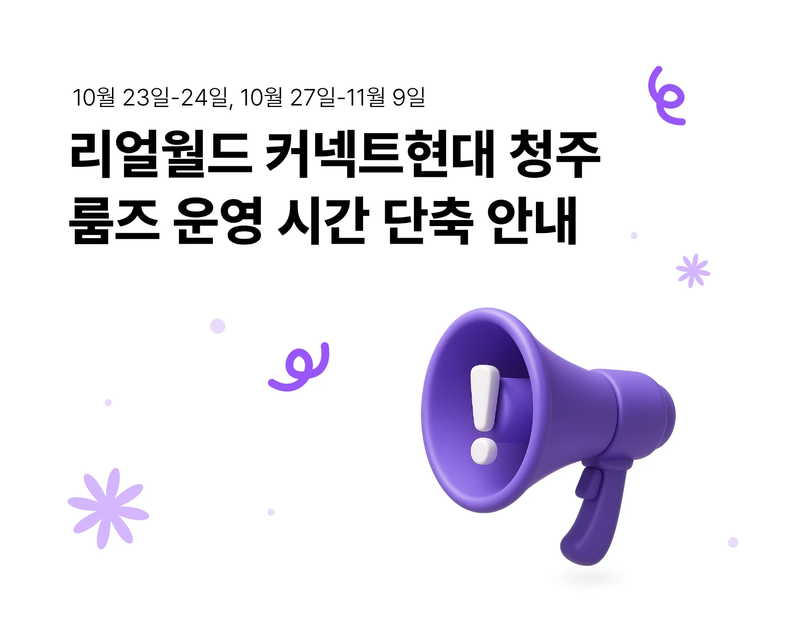 리얼월드 커넥트현대 청주 [룸즈] 운영 시간 단축 안내
