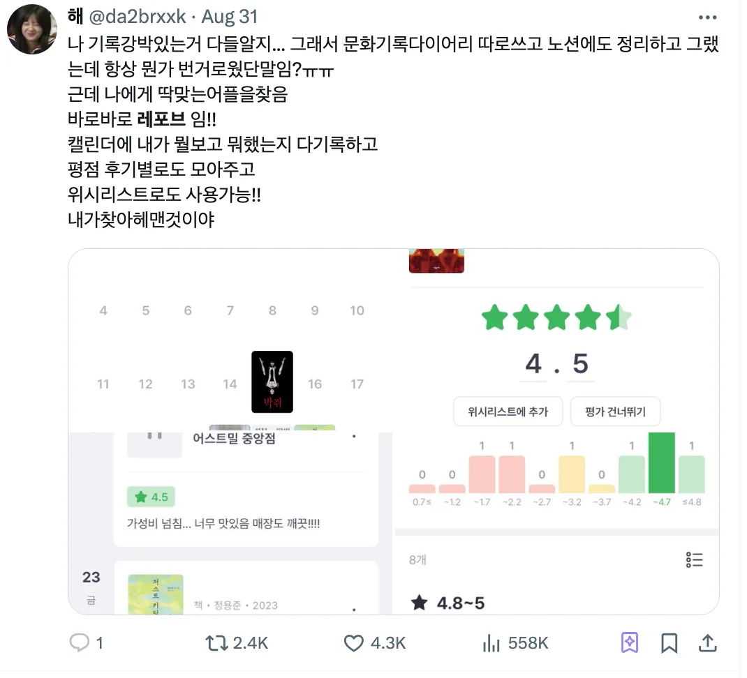 요즘 영화, 드라마, 책을 보는 트친한테 내가 추천하고 다니는 어플이 있다.