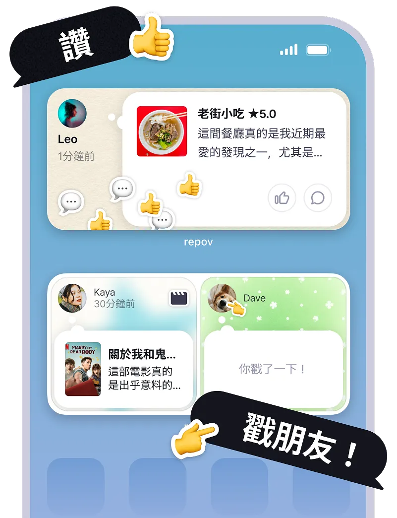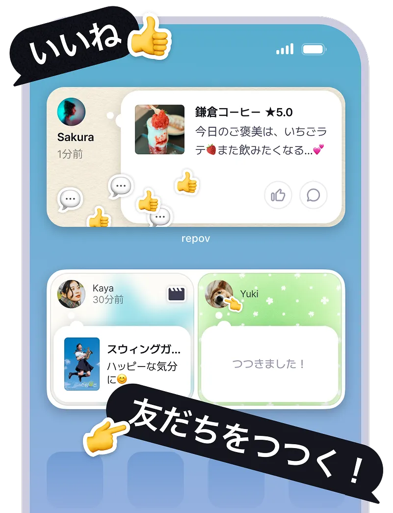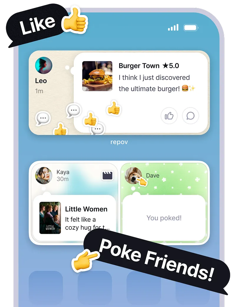 Con el widget en la pantalla de inicio puedes ver el día a día, las películas, los libros y la música de tus amigos, y dejarles un like o un comentario. Invita a tus amigos cercanos y disfruta conectando con ellos a través del widget. Hay dos tipos de widgets: uno que muestra solo los registros de tus seguidores y otro que muestra solo los de tus amigos cercanos. Úsalos según lo necesites. Tus registros privados no aparecerán, así que úsalo con tranquilidad :) (Disponible a partir de la versión 1.3.0) [Cómo añadir un widget] iOS En la pantalla de inicio, mantén presionado un widget o un área vacía hasta que las apps empiecen a moverse. Toca “Editar” en la esquina superior izquierda. Toca “Añadir widget”. Selecciona el widget, elige el tamaño y toca “Añadir widget”. Toca “OK” o “Listo”. Android Mantén presionada un área vacía de la pantalla de inicio. Selecciona el menú de “Widgets”.