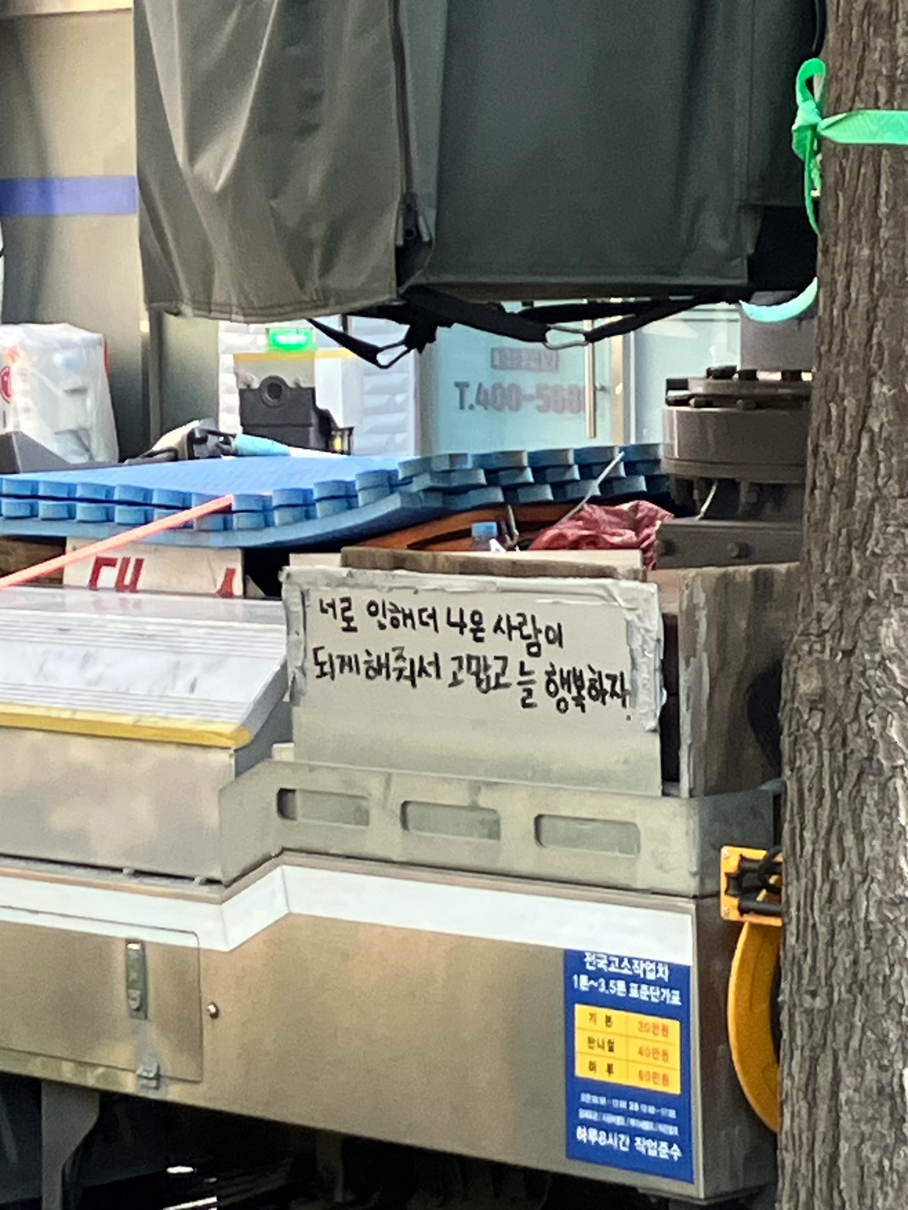 뛰고 나서 42.195km를 뛰었다. 궁금했다. 내가 완주할 수 있을까? 뛰고 나면 어떤 기분일까? 얼마나 걸릴까? 뛰었지만 궁금함이 해결된 느낌은 아니다. 그냥 많이 힘들다는 느낌밖에 없었다. 누군가는 벅차서 눈물을 쏟거나 바닥에 쓰러지던데 그정도로 간절하진 않았나보다. 뛰기 하루 전날 선희한테 말했다. 마라톤 완주하고 나면 나는 마라톤 완주한 내가 되는 거라고. 근데 그냥 나와 마라톤 완주한 나는 뭐가 다르지? 레이스 당일 전날 일찍 잠들어서 새벽 4시 전에 일어났다. 알람을 4시에 맞춰두었는데 알람 소리 나기 전에 눈이 떠졌다. 어제 챙겨둔 짐을 한번 더 확인하고 미리 잘라둔 근육 테이프로 무릎과 허벅지, 종아리에 꼼꼼하게 테이핑을 붙였다. 선희가 탁센을 챙겨두었다. 뛰기 전에 한 알, 뛰다 무릎에 느낌이 오면 한 알 먹을거다. 무릎이 좀 아파도 참고 뛸 생각했다. 상암까지 꽤 먼 길이다. 경찰병원역에서 출발하는 3호선 첫 차는 5시 17분에 온다. 첫 차 타고 약수로 가서 3호선으로 환승해야 한다. 오늘 대회 나가는 러너들이 몇명 보였다. 3만 5천명이 모여서 서울을 가로지른다는 게 말이 그렇지 진짜 엄청난 이벤트다. 뭔가 수상해보이는 패션... 그래도 아침엔 좀 춥다. 약수에서 6호선 환승하니 그냥 러시아워의 2호선이나 마찬가지였다. 월드컵경기장역은 거의 뭐 북새통이었다. 역에서 나오니 어둠이 걷히고 있었다. 화장실 들렀다가 옷 갈아입었다. 싱글렛 위에 우의 입었다. 우의는 입고 있다가 웜업 되면 벗어서 주로에 있는 쓰레기통에 넣는다. 짐 맡기고 경기장 주변을 천천히 뛰었다. 심박이 평소보다 좀 빨리 오르는 느낌이라 불안했지만 그런 생각은 접어두기로 했다. 출발 직전 모르는 아저씨 사진 찍어드렸는데 그분이 보답으로 나도 찍어주셨다. 풀코스 기록이 없어서 F그룹에 배정되었다. A그룹부터 G그룹 순서로 달린다. 출발 전에 버핏서울팀에서 나와 준비운동 했는데 몸이 금방 더워져서 우의 벗었다. 우의는 출발 전에 인도쪽에 벗어서 버리라고 계속 방송이 나왔다. 달리다 중간에 버리면 뒤에 따라오던 주자가 걸리거나 미끄러질 수 있어서다. 뒷 그룹이라 지겹게 오래 기다릴 줄 알았는데 생각보다 금방 출발했다. 이 사진이 완주하기 전에 찍은 마지막 사진이다. 레이스 완주가 목표라고 했지만 내심 3시간 50분 정도에 들어올 생각했다. 아예 완주 못할 수도 있지만 완주하면 sub 4는 할 것 같았다. 인스타에 너도 나도 sub 4, sub 3 기록을 인증하는 세상이라 나라고 못할 거 없다 싶었다. 3시간 50분에 들어오려면 km당 5분 30초 안쪽 페이스로 뛰어야 한다. 초반 5km 까지는 5분 40~50초 페이스로 뛰어보면서 몸 상태에 따라 페이스를 올리거나 목표를 수정하기로 한다. 어차피 초반에는 병목 때문에 마음껏 뛰지도 못한다. 상암에서 합정으로, 공덕까지 한강 다리를 두번 건너면서 한껏 기분이 좋아졌다. 페이스가 자꾸 빨라져서 일부러 조절하면서 뛰었다. 응원하는 사람들도 다들 기분 좋아보였다. 공덕을 지나 종각, 광화문을 지날 때는 이런 날씨에 서울을 가로질러 뛸 수 있다는 게 감사하다는 생각까지 들었다. 광화문에서 신설동으로 내려가는 동안에는 예전에 선희랑 신혼 생활 할 때 생각도 하고(그때 신설동에 살다 은평구로 이사갔었다) 올해 초 YMCA 하프마라톤에서 광화문에서 신설동 가는 코스가 멀게만 느껴졌던 생각도 났다. 그때 생각하며 더 천천히 길게 생각하면서 뛰자고 마음 먹었다. 하프 거리 정도를 지나자 이대로면 풀코스 괜찮겠다 싶었다. 물론 교만한 생각이었다. 30km 부터 진짜 시작이라는 말을 너무 많이 들었다. 심지어 GPT도 그렇게 말했다. 그런데 30km 까지도 괜찮았다. 물론 조금씩 힘든 느낌은 있었지만 견딜만한 수준이었다. 잠실대교를 지나 롯데타워가 보이기 시작하자 이제 집에 다 왔다는 생각도 들고 레이스가 끝나간다는 게 아쉽기도 했다. 잠실대교 지나 우회전해서 학여울역으로 가는 길부터가 진짜들의 시간이었다. 이때부터 응원 소리에 호응하기도 쉽지 않았다. 그래도 내 배번호에 써 있는 이름 불러주는 분들 있어서 너무 감사했다. 학여울역으로 가는 길이 살짝 오르막인데다, 유턴해서 돌아오는 사람들이 멀리 아득하게만 보여 급격하게 지치기 시작했다. 길가에서 샤인머스캣 포도알 나눠주시는 분, 레몬 조각 나눠주시는 분들이 있어 받아 먹었다.(감사합니다) 7km 마다 에너지젤을 먹을 계획이었으나 35km 되기 전 33km에서 먹고, 30km에서 보너스로 받은 에너지젤은 38km에서 먹고 마지막 힘을 짜내기로 했다.