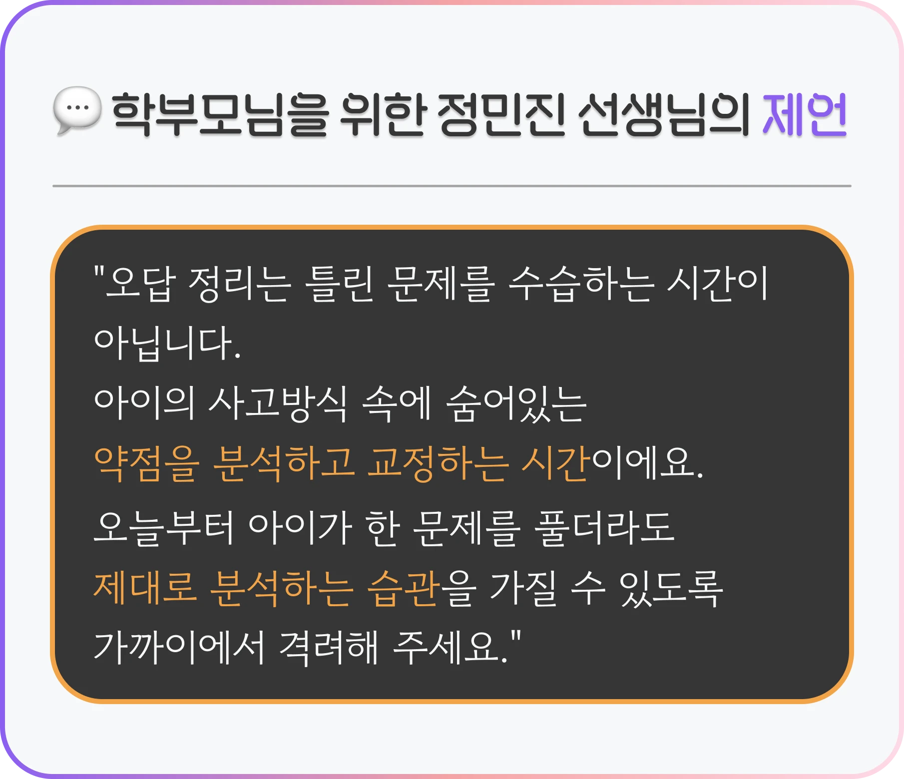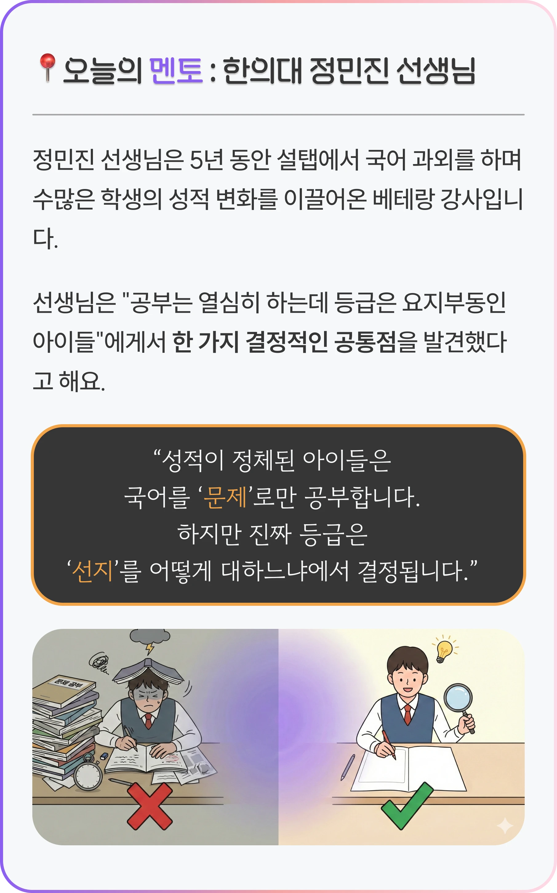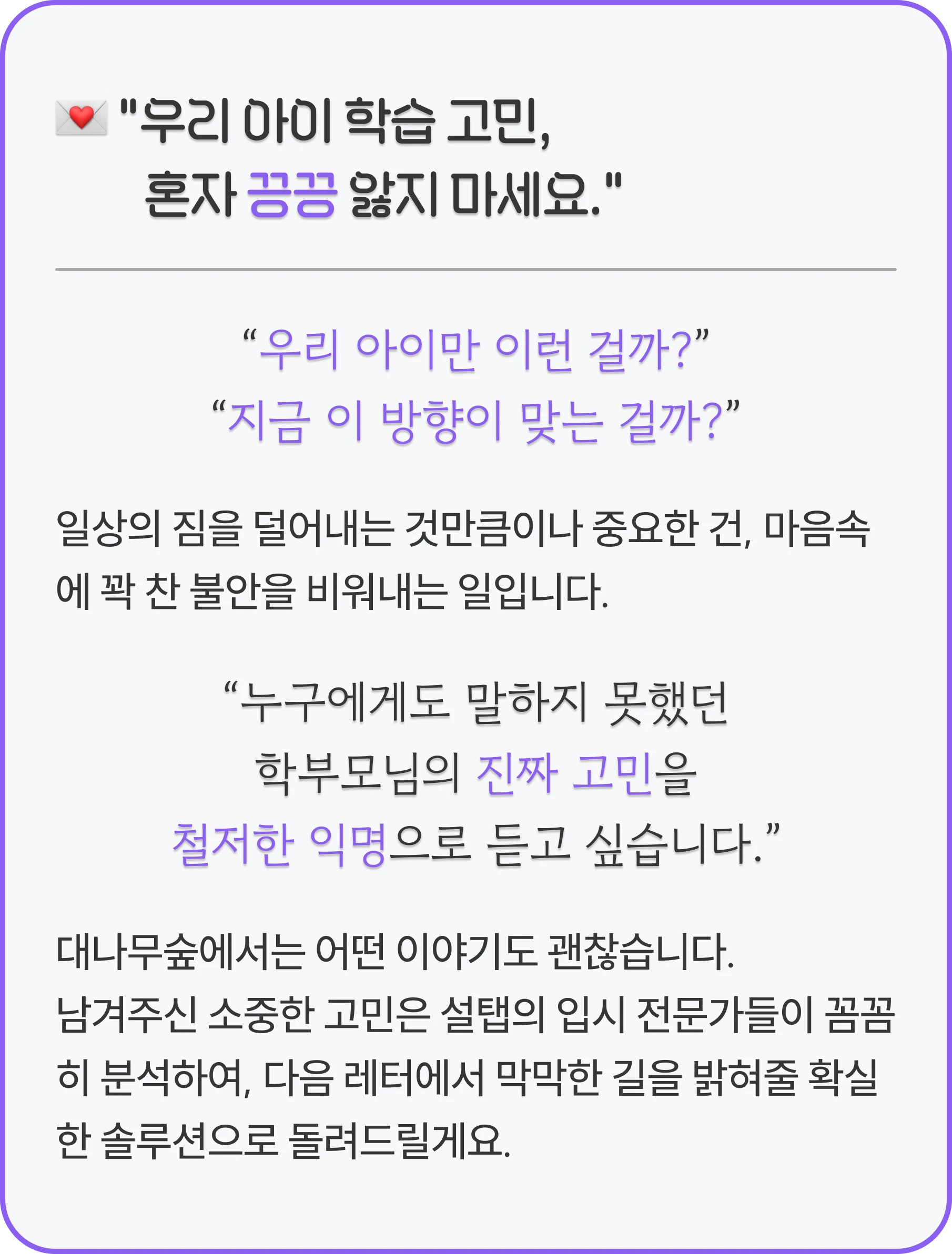 막막한 입시 정보부터, 아이의 공부 습관, 양육 가이드까지 많은 정보 속에서 길을 잃지 않도록,