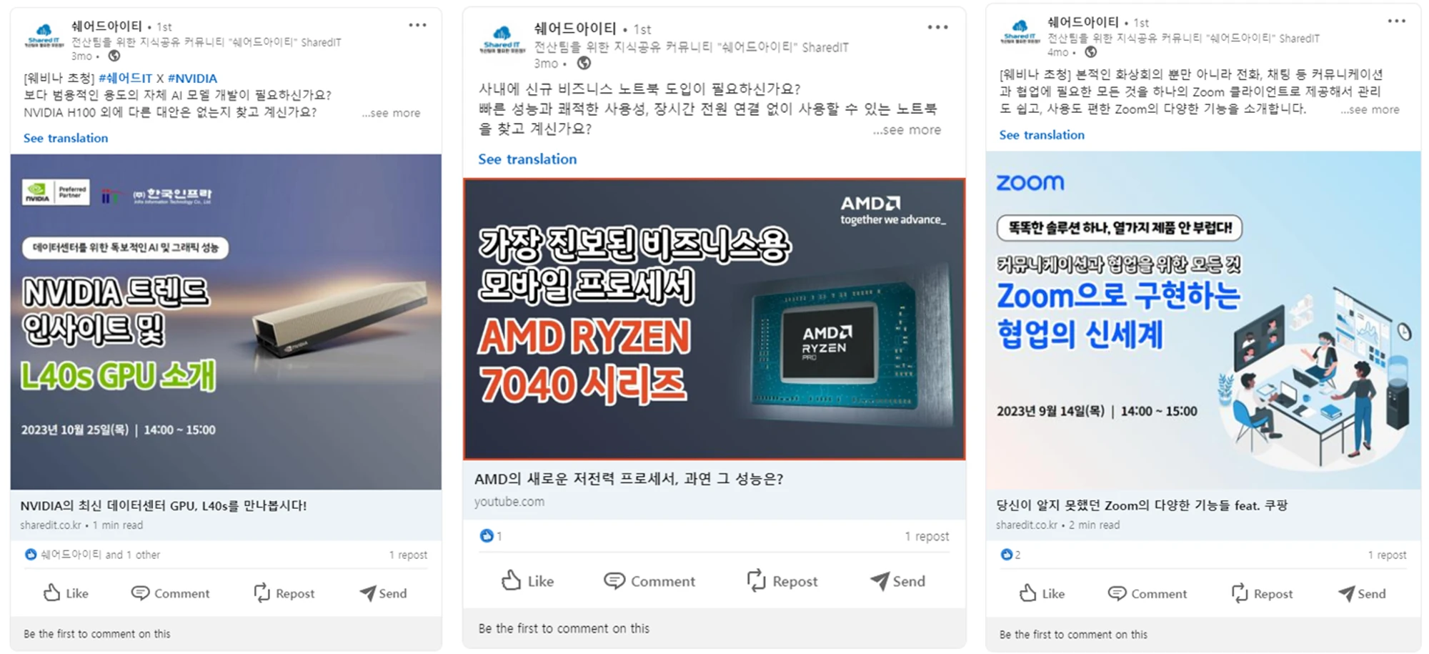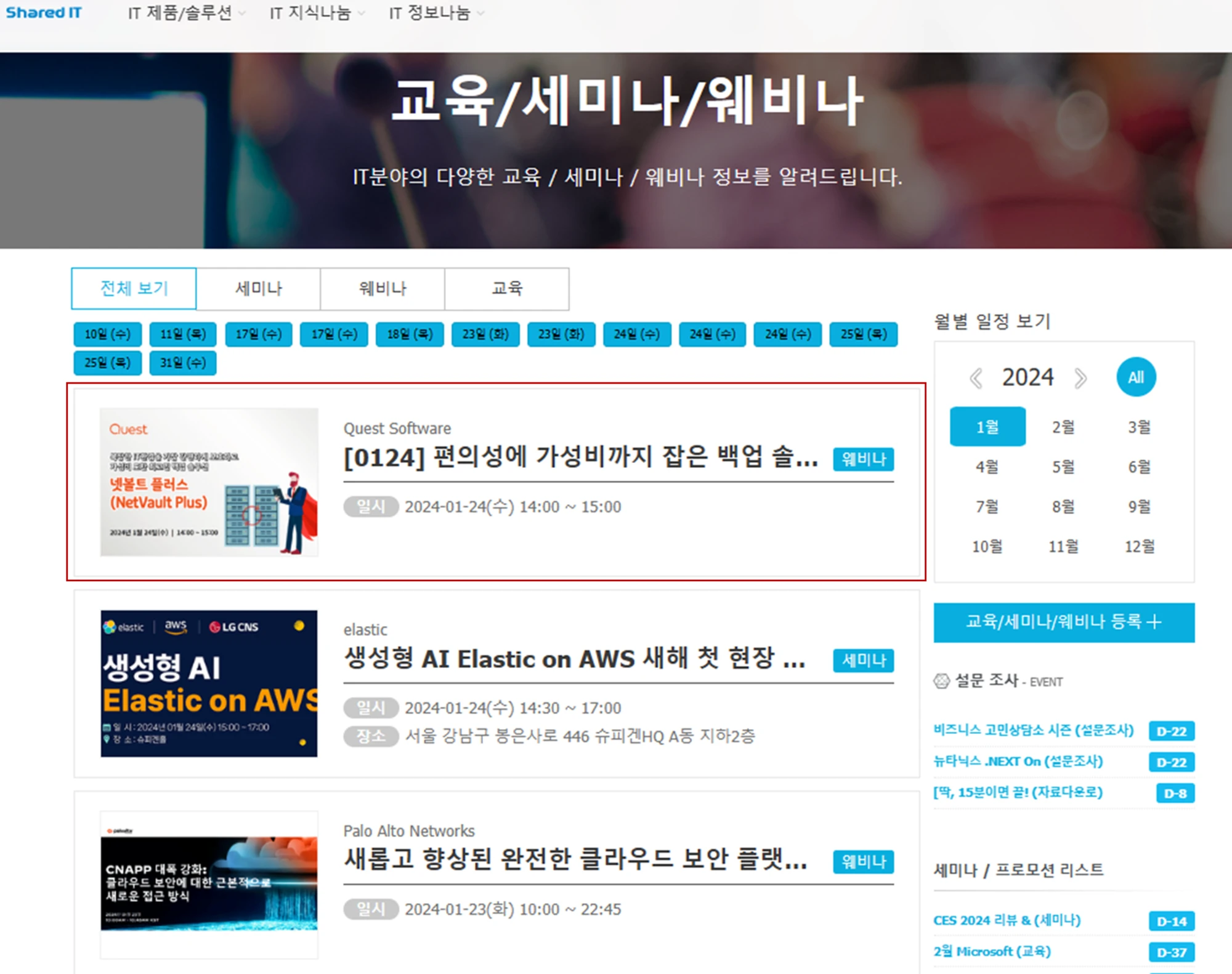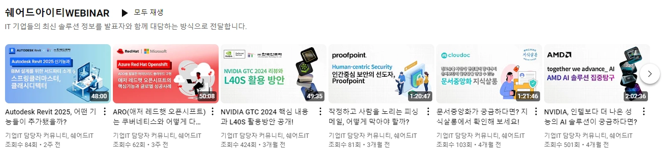 - IT 기업들의 최신 솔루션 정보를 발표자와 함께 대담하는 방식으로 전달하는 쉐어드아이티 WEBINAR