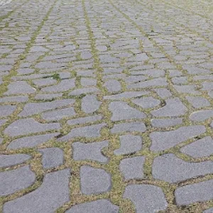 : 틈 사이로 잔디가 자랄 수 있는 형태의 석재 블럭
